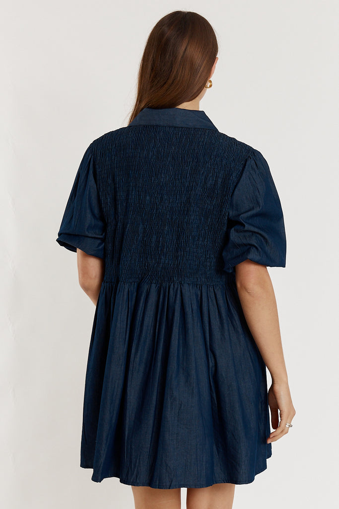 A summer favourite in dress form. With a stretchy shirred bodice and button-through front, this cotton dress flatters every curve and keeps things breezy for sun-soaked days.
