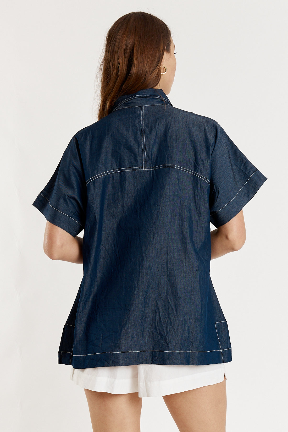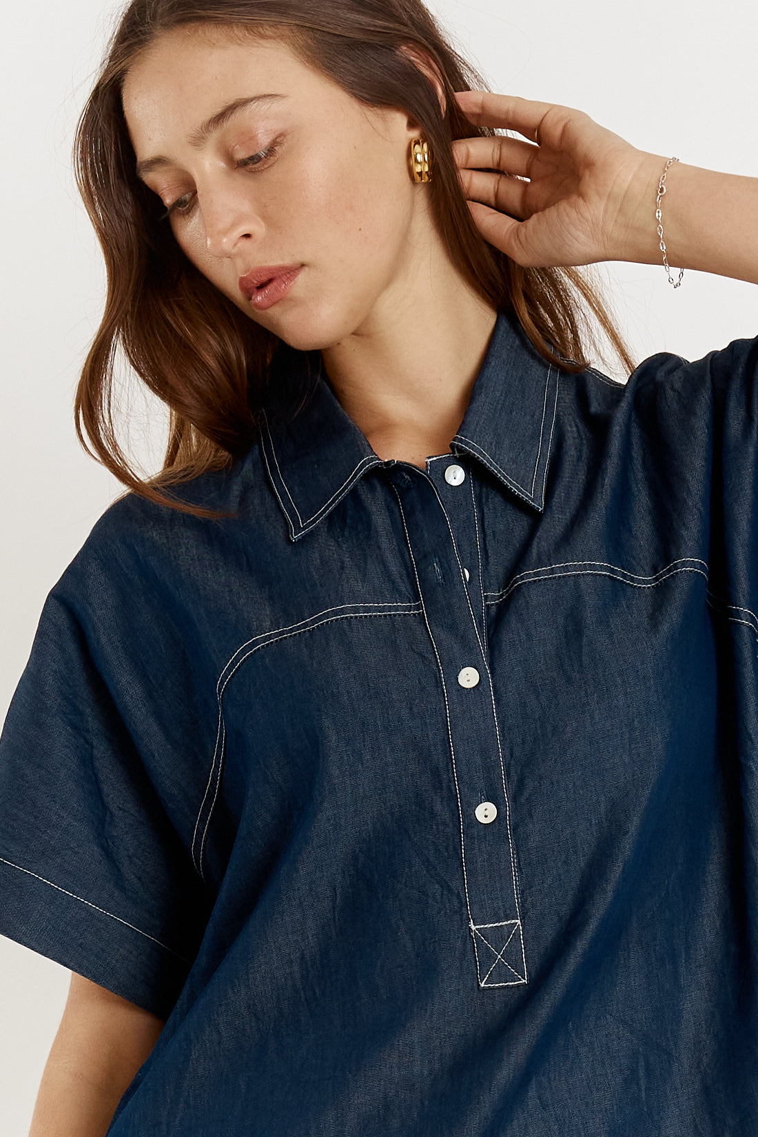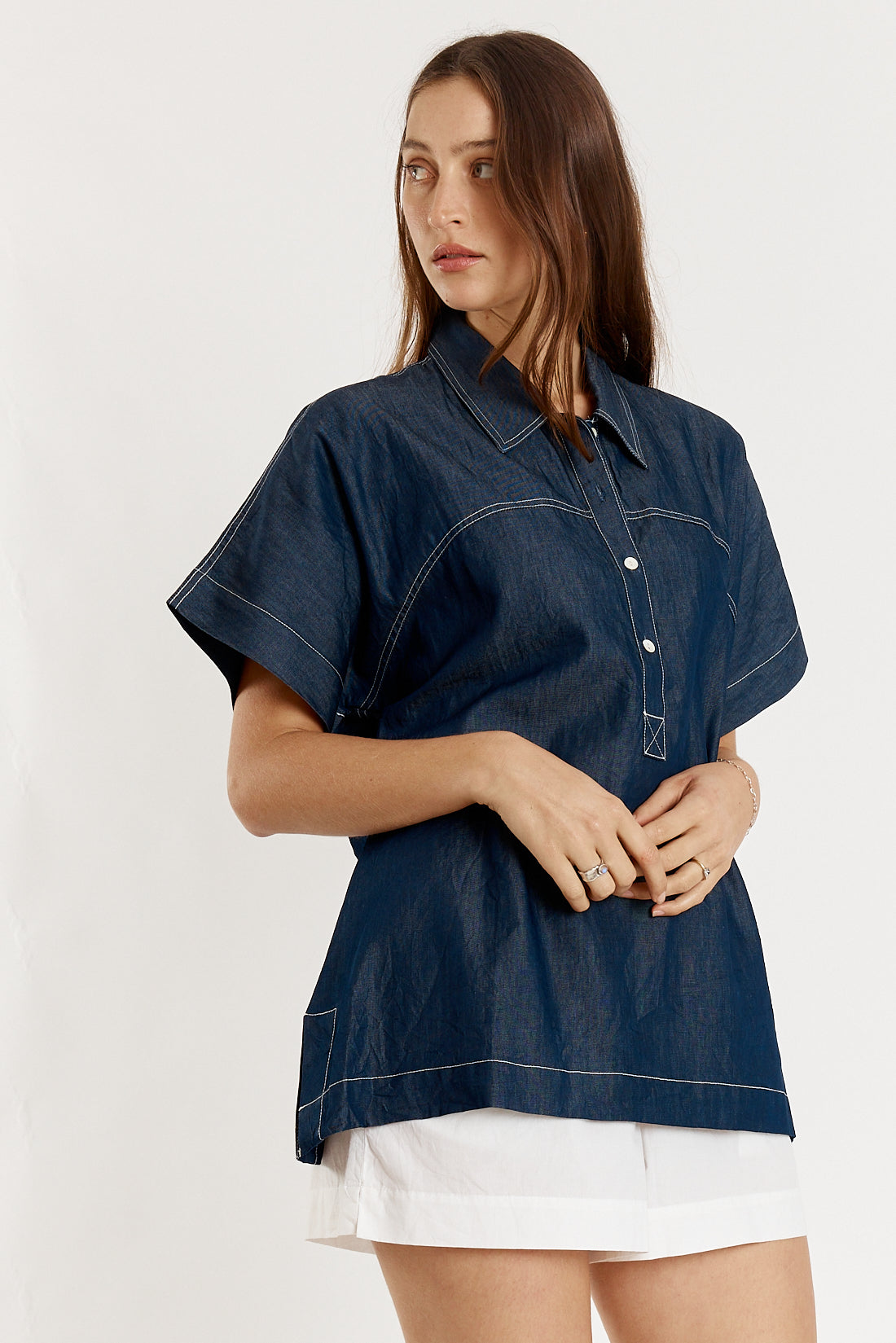 Lightweight cotton and a short-sleeve silhouette give this top everyday versatility. Finished with a ¾ button placket, it’s the perfect blend of ease and polish.