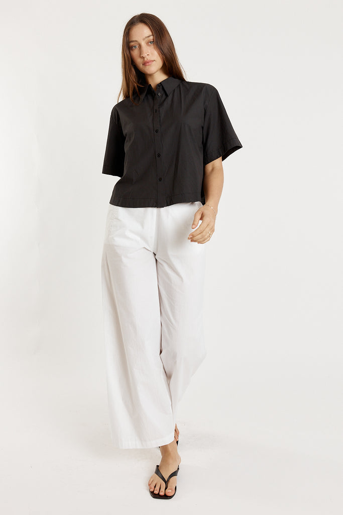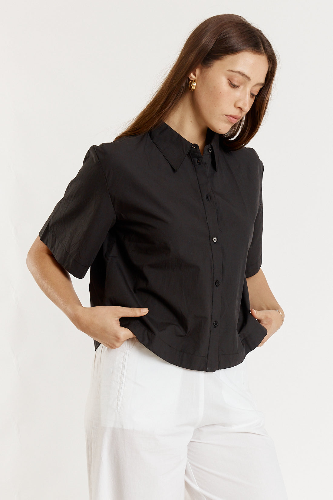 A crisp cotton poplin shirt with short sleeves for summer ease. The button-through front and classic fit make it an instant warm-weather hero.