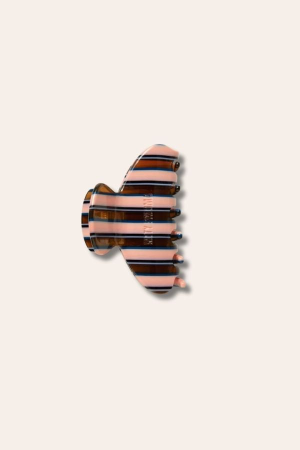 Your ultimate go-to claw for all hair lengths in our original Nolita. Beautiful on trend chocolate stripes, with a medium pink interlocked with a cerulean blue stripe - chic and contemporary.