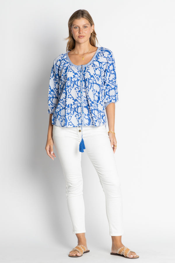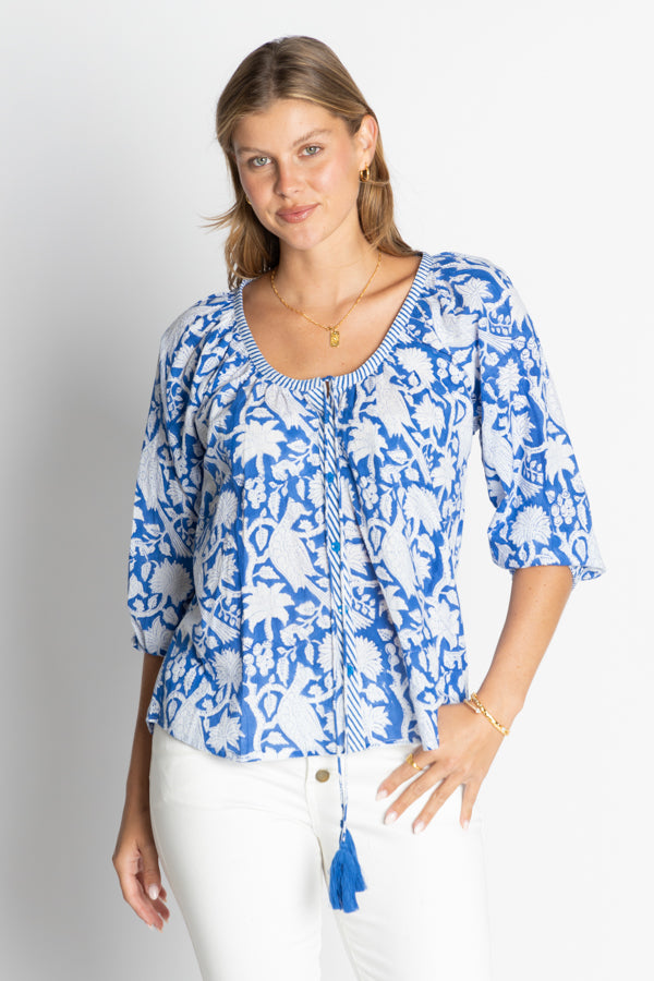 The IBSA Carolina Shirt blends timeless design with relaxed sophistication. Crafted from 100% breathable cotton, this versatile piece features a flattering relaxed fit and a curved hem that drapes beautifully. The adjustable round neckline with delicate ties and tassels adds a touch of charm, while the front tab button closure and ¾ length elasticated sleeves offer comfort and style. Designed in Australia, it’s the perfect shirt for workdays, weekends, and everything in between. Pair it with tailored trousers or denim for a refined yet laid-back look.