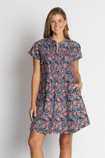 Discover the IBSA Illinois Dress, designed for timeless style and everyday comfort. Made from 100% breathable cotton, this dress features a relaxed fit with a Nauru collar and flattering V-neck. Vertical tucks on the bodice create a subtle waist definition, while the curved hem and short sleeves enhance its effortless silhouette. Functional side pockets add convenience, making it perfect for casual outings or weekend gatherings. Proudly designed in Australia, the IBSA Illinois Dress combines style, comfort, and practicality in one versatile wardrobe staple.