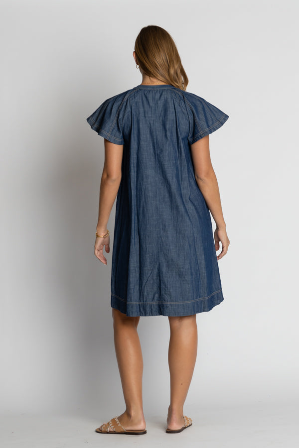 Effortlessly stylish and easy to wear, the IBSA Kentucky Swing Dress is your go-to for relaxed, everyday elegance. Crafted from 100% cotton denim, this timeless A-line dress features a flattering V-neckline, knee-length hem, and side pockets for ultimate comfort and functionality.