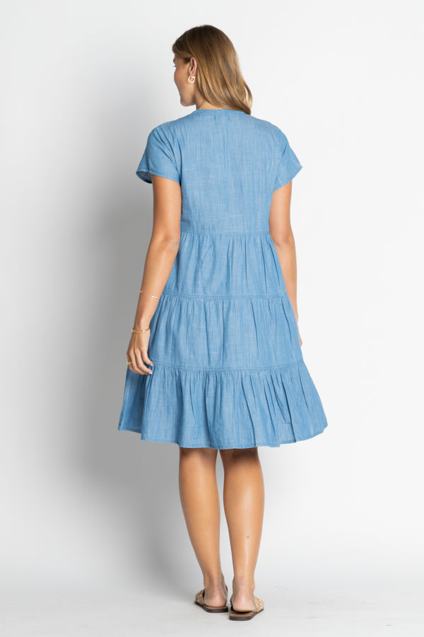 Effortlessly stylish and beautifully detailed, the IBSA Kentucky Tuck Dress is a timeless wardrobe essential. Crafted from 100% cotton denim, this breathable dress combines comfort with refined design. The V-neck with band and button-front bodice creates a flattering silhouette, while the intricate tuck detailing adds texture and sophistication.