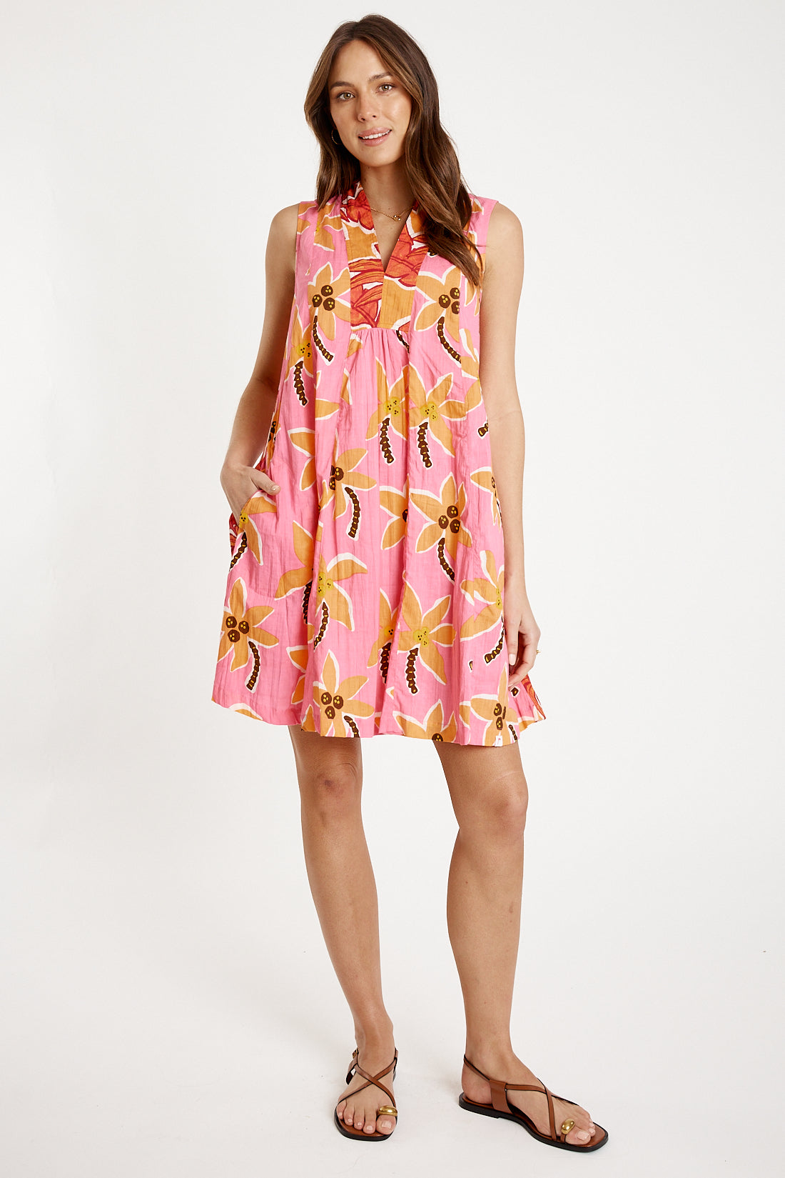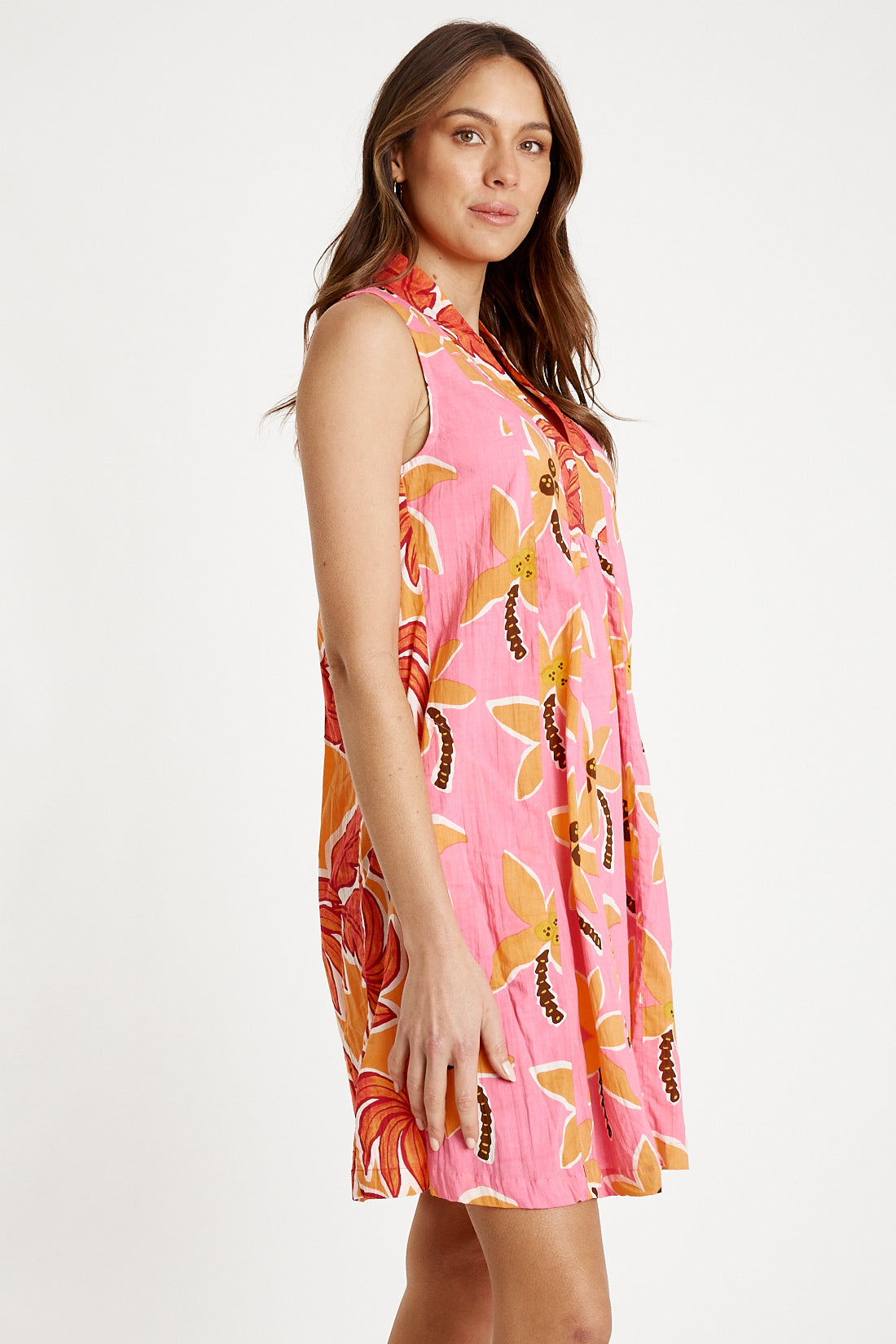 Fresh, easy, and perfect for warm days, the I.B.S.A Omaha Sleeveless Dress delivers effortless style with a playful twist. Made from 100% cotton, it features a flattering V-neck with a clean band finish and a relaxed A-line silhouette that’s comfortable and easy to wear. The contrasting prints at the front and back add a fun, modern touch, while the knee-length cut keeps it versatile for everyday outings. With practical side pockets and Australian design details, this dress is a simple throw-on piece that still stands out.