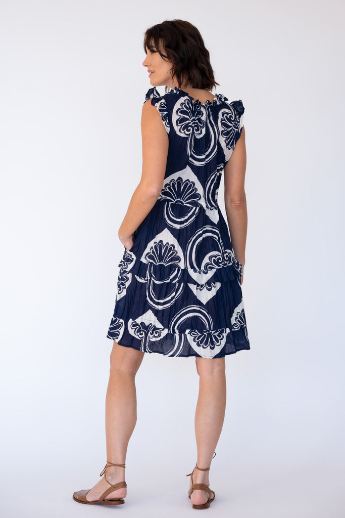 Effortlessly elevate your summer wardrobe with the IBSA Sierra Sleeveless Dress. Crafted from 100% breathable cotton, this knee-length beauty combines comfort with feminine detailing. The round neckline is finished with a delicate frill, while soft shoulder ruffles and gathered tiered panels add graceful movement. Designed in Australia, it features subtle tucks for texture and handy side pockets for everyday ease. Perfect for warm days and weekend getaways, this dress delivers casual charm with refined flair.