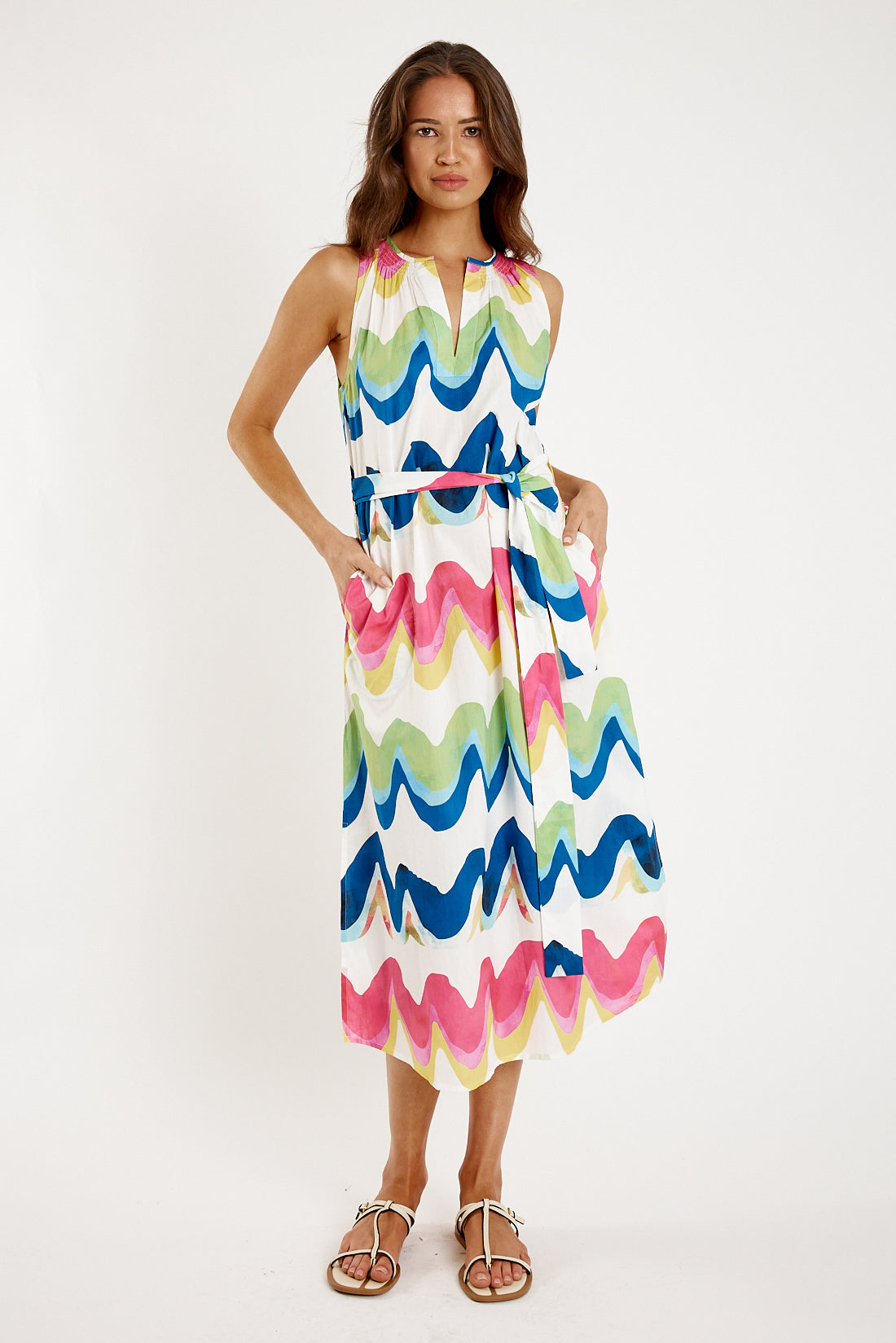 Effortless style defines the Itami Alto Sleeveless Dress, crafted from breathable 100% cotton for all-day comfort. Its graceful midi silhouette moves with ease, while discreet side pockets bring practicality to your everyday wardrobe. An optional belt lets you tailor the fit—cinched for shape or relaxed for a laid-back look.