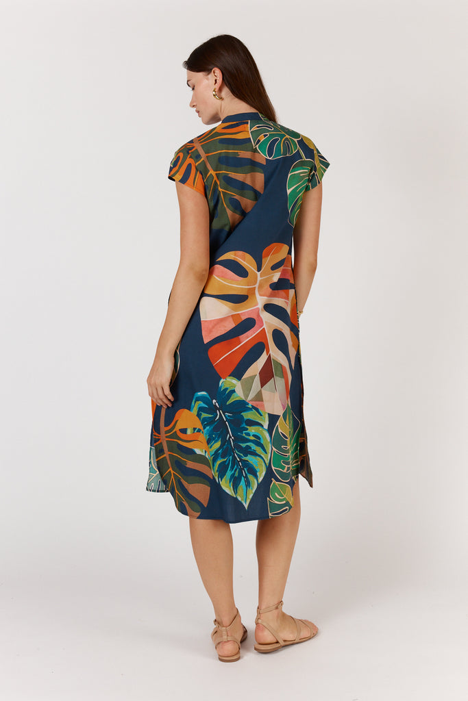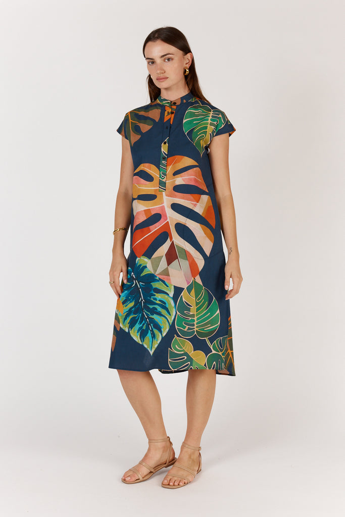 Itami Bloom Cap Sleeve Dress Navy