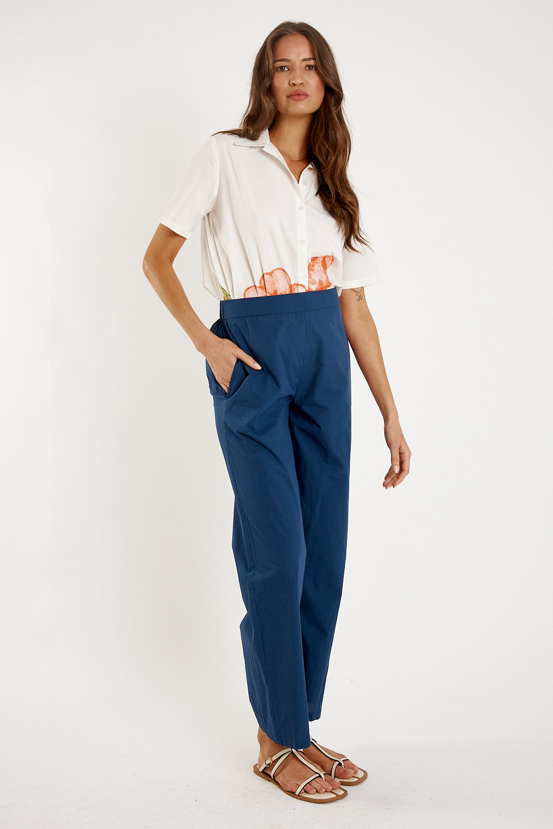 The Itami Staple Pant in Navy is an essential wardrobe foundation crafted from premium cotton. Designed in Australia, this refined piece features a flat waistband and straight leg cut that delivers timeless elegance with effortless versatility. Perfect for building a sophisticated, minimalist wardrobe that transitions seamlessly from day to evening.