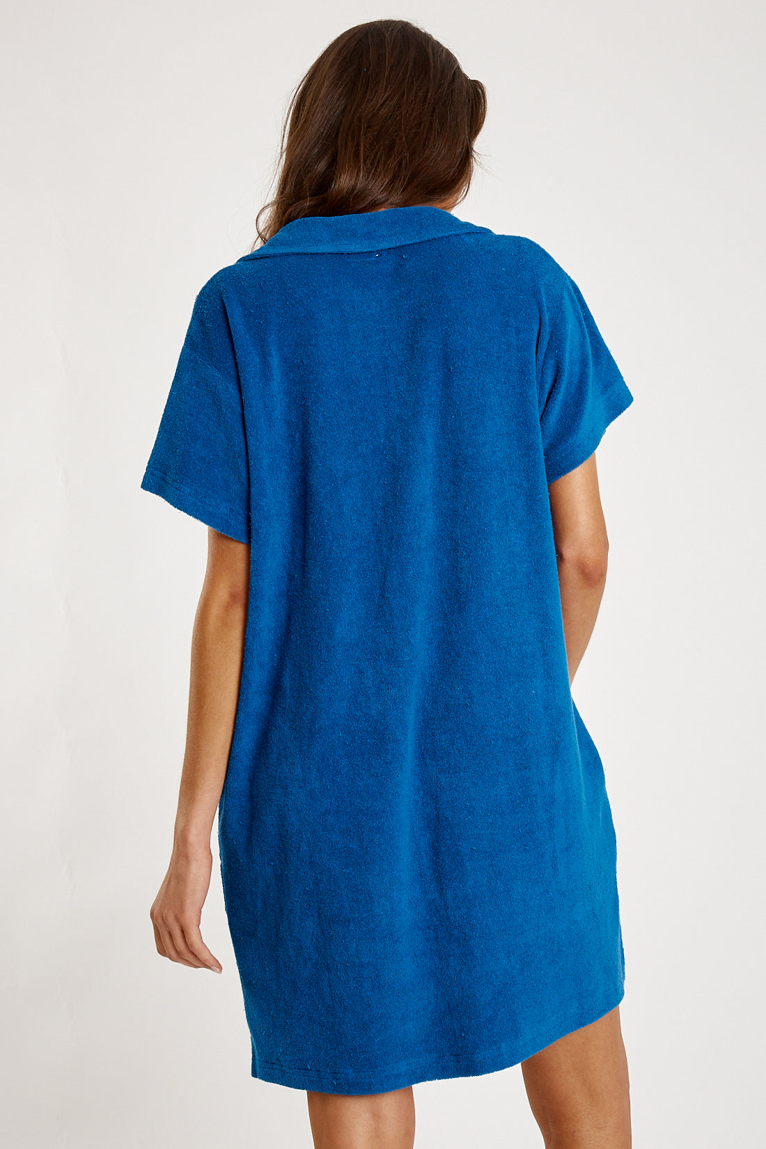 Effortless beach style meets everyday comfort with the Itami Terri Zip Dress in Blue. Crafted from soft terry towelling, this throw-on favourite features a convenient front zip for easy layering and practical pockets to keep your essentials close. Whether you're heading to the beach or running errands, slip it on and go—the relaxed fit and breathable fabric make it your go-to piece for warm weather days.