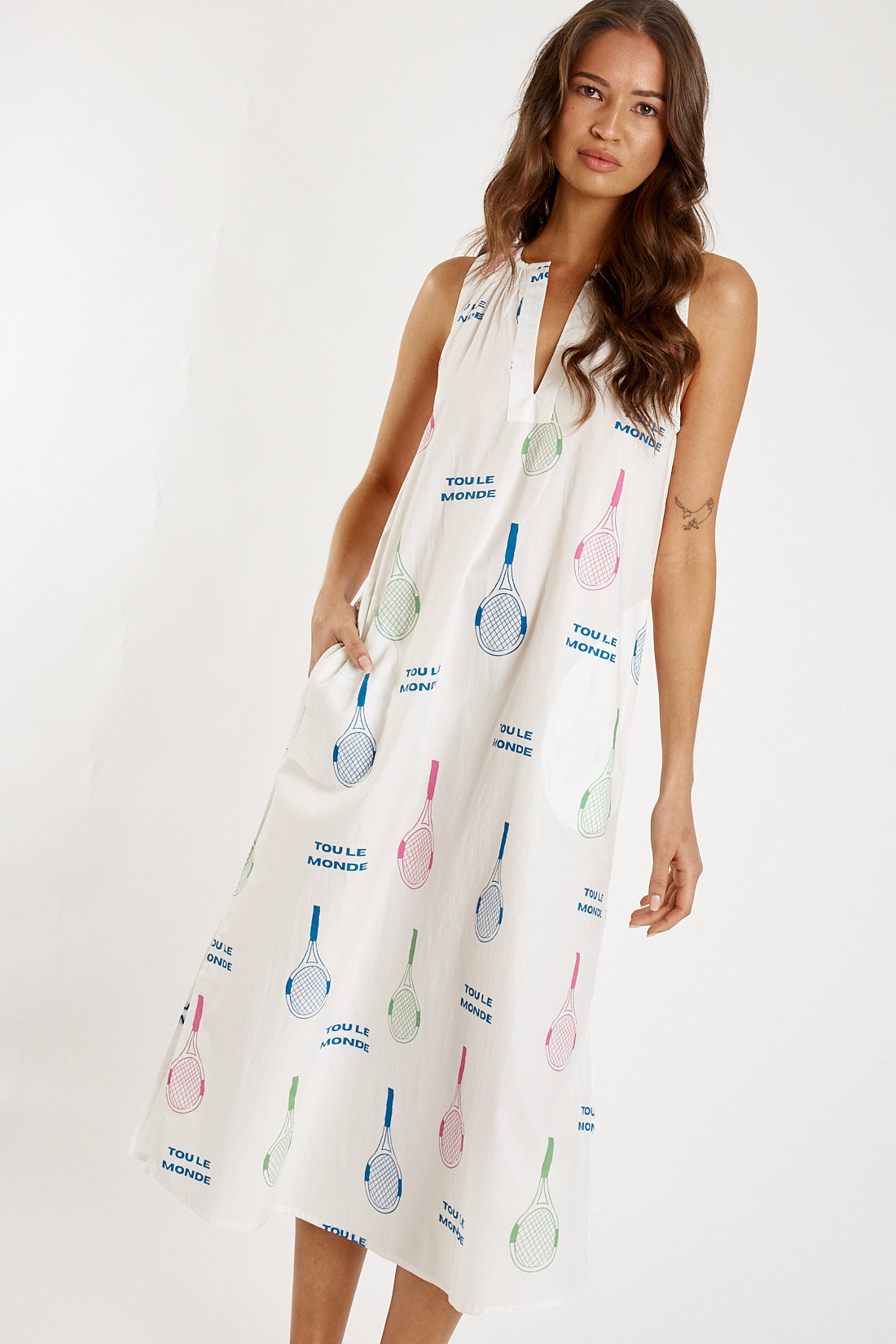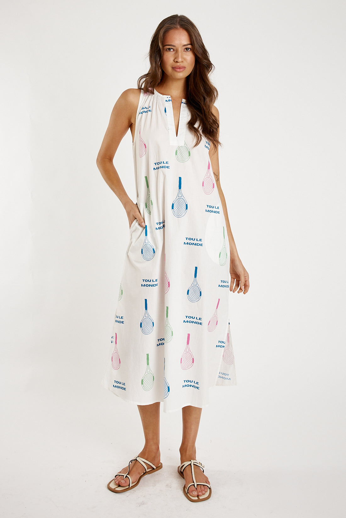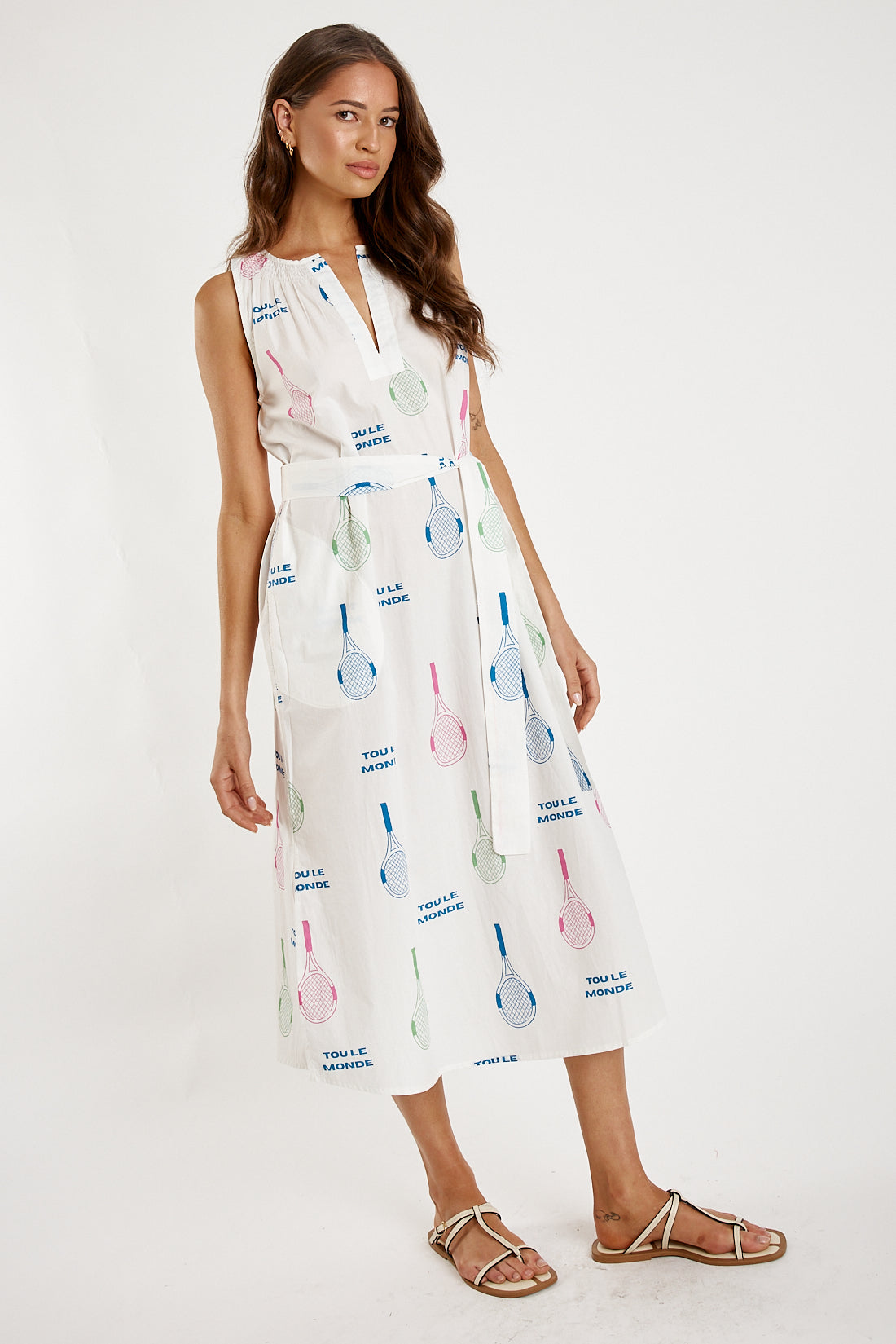 Effortless style defines the Itami Tout Le Tenis Sleeveless Dress, crafted from breathable 100% cotton for all-day comfort. Its graceful midi silhouette moves with ease, while discreet side pockets bring practicality to your everyday wardrobe. An optional belt lets you tailor the fit—cinched for shape or relaxed for a laid-back look.