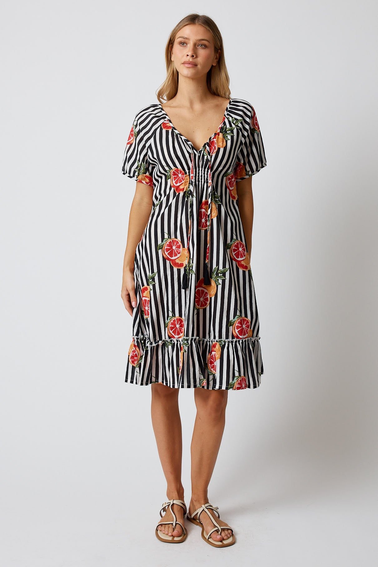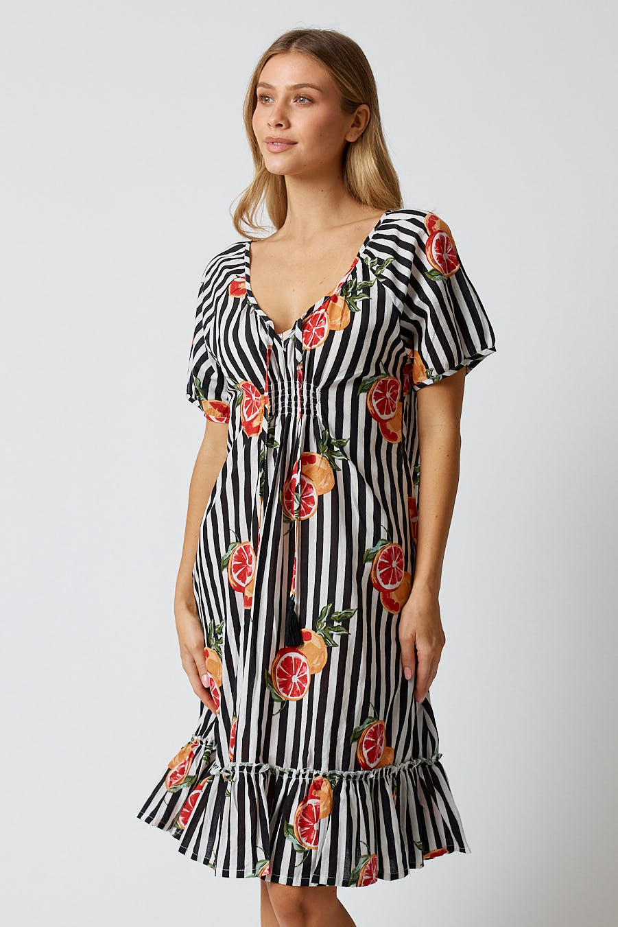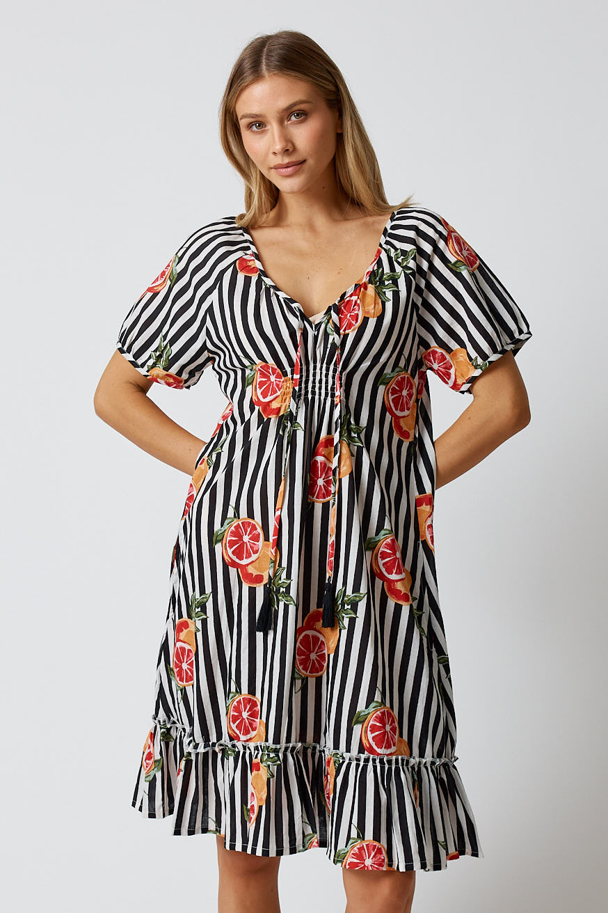 Easy, relaxed, and full of colour, the Kabana Inis Shirred Dress is the kind of throw-on style you’ll wear all summer long. Made from soft 100% cotton, it features a comfy shirred bodice that gives you a flexible, flattering fit without feeling tight. The exclusive Kabana print adds a fun pop of personality, making it perfect for holidays, weekend outings, or any warm day when you want to feel cute without trying too hard.