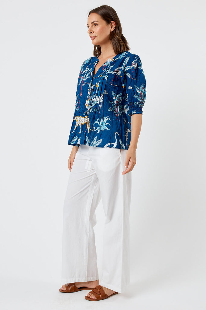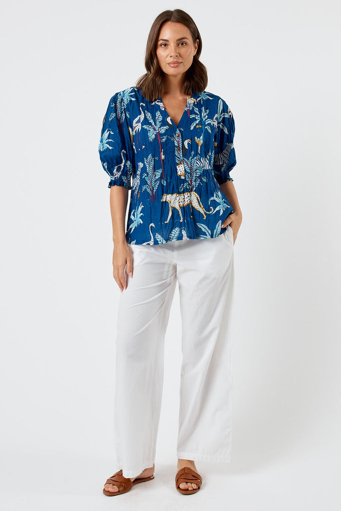 Bold and bright, the Kabana Safari Top brings a fun twist to any outfit. The easy shape and breathable cotton make it an everyday favourite, while the exclusive Kabana print adds a playful, adventurous touch.