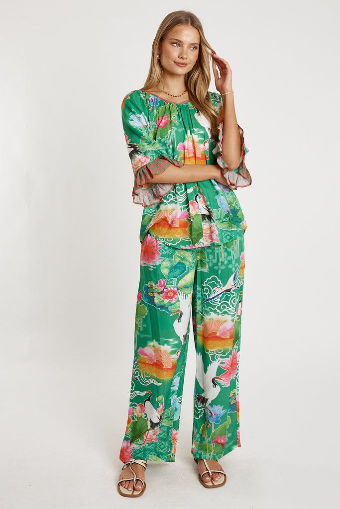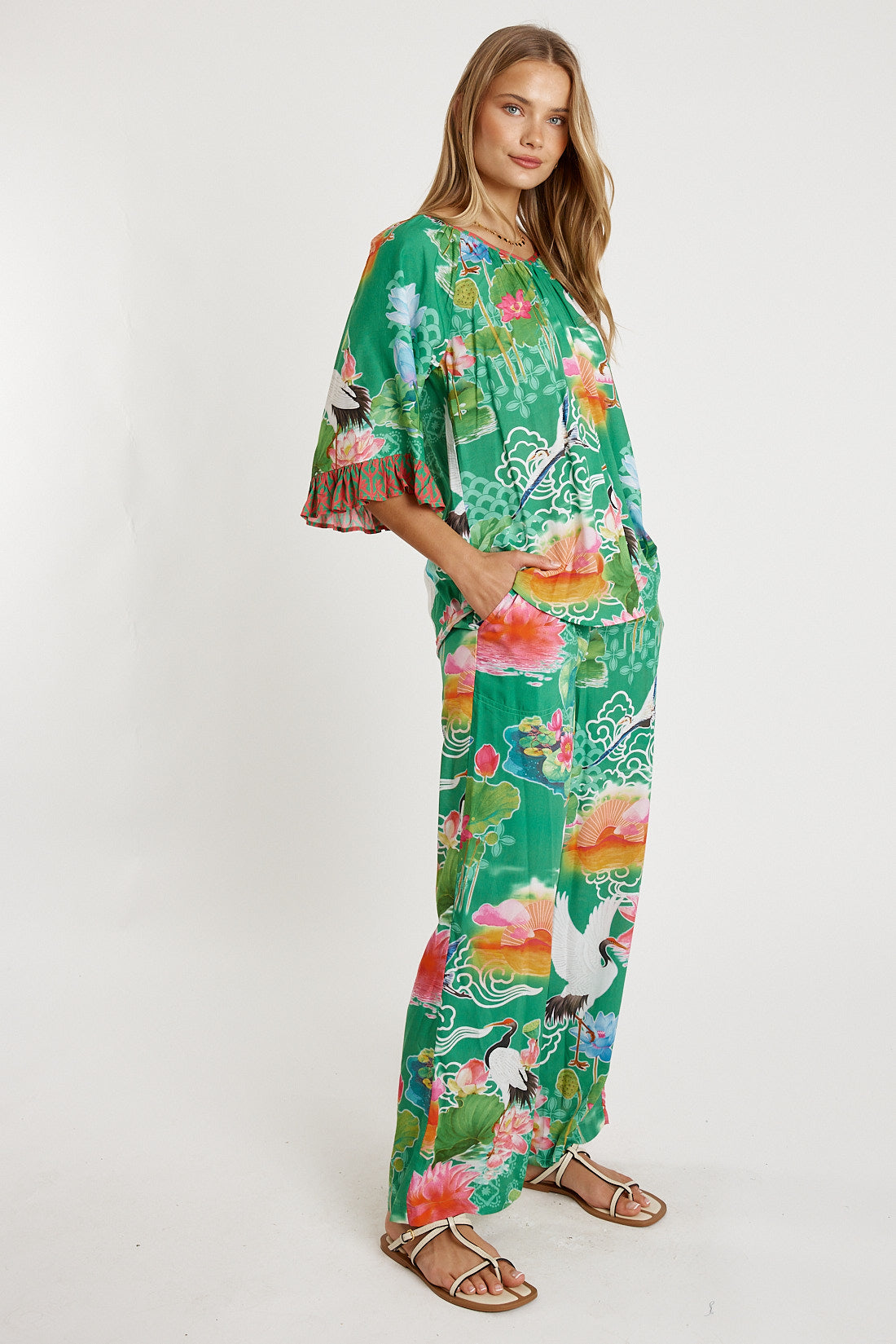 Bringing comfort and colour together, the LulaLife Akiko Pant is the perfect easy-wear style for warm days. Made from 100% viscose, these pants feel soft, cool, and lightweight with a relaxed fit that moves with you. The shirred waist yoke offers a flexible, comfy feel, while the straight leg keeps the silhouette clean and flattering. Designed with side pockets and a full-length cut, they’re finished in a bold Japanese-inspired digital print that adds a fresh pop to any outfit. Proudly designed in Australia, they pair perfectly with a simple tee or the matching Akiko Top.