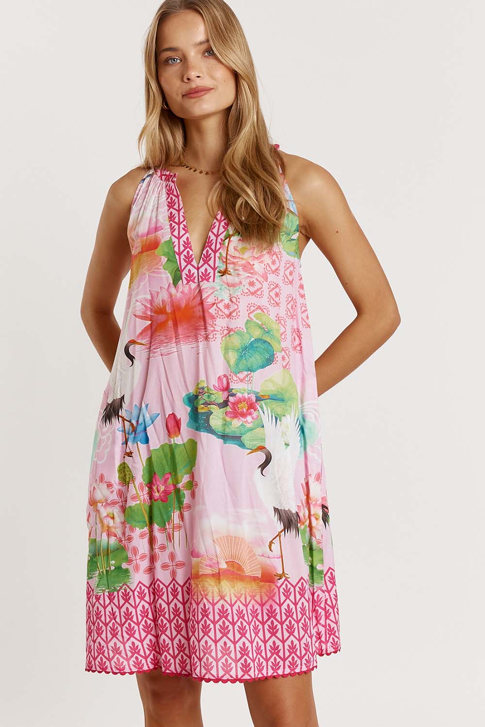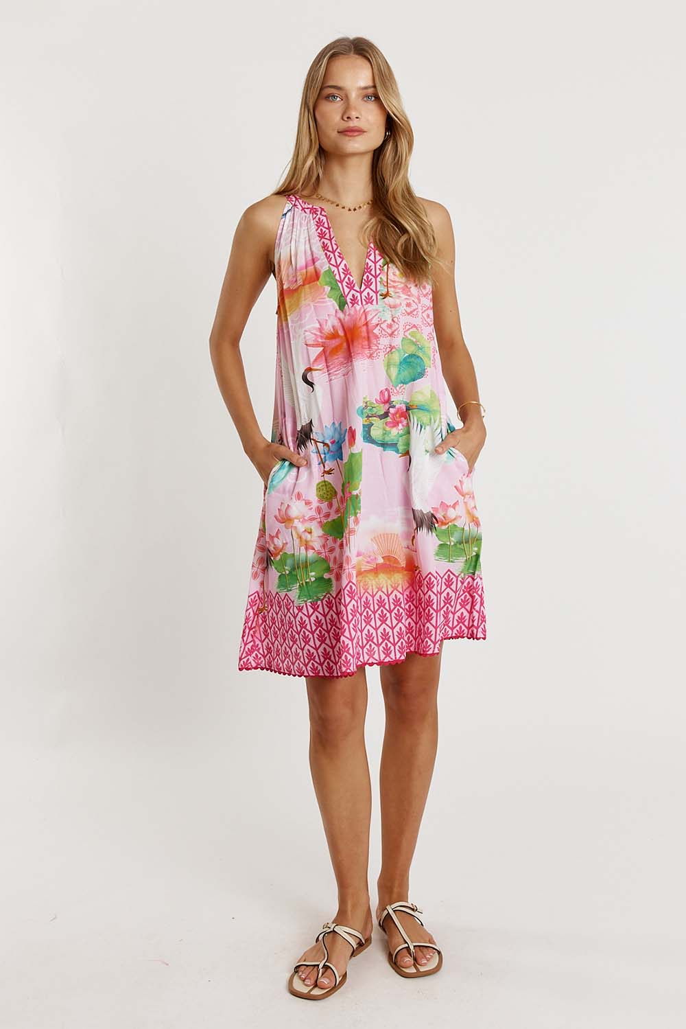 Stepping into warm days feels effortless in the LulaLife Akiko Sundress, a breezy favourite made from 100% viscose for a soft, lightweight feel. Designed with a round neck with band, this relaxed A-line dress gives you easy movement and everyday comfort. The side pockets add a practical touch, while the knee-length cut and ricrac trim on the hem keep things fun and feminine. Finished in a Japanese-inspired digital print and proudly designed in Australia, it’s the perfect throw-on style for weekends, holidays, or sunshine-filled outings.