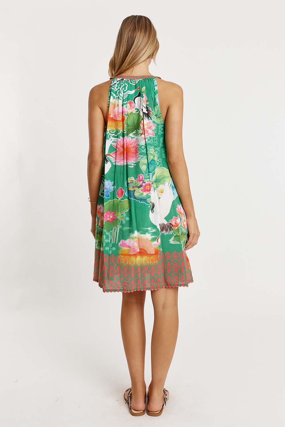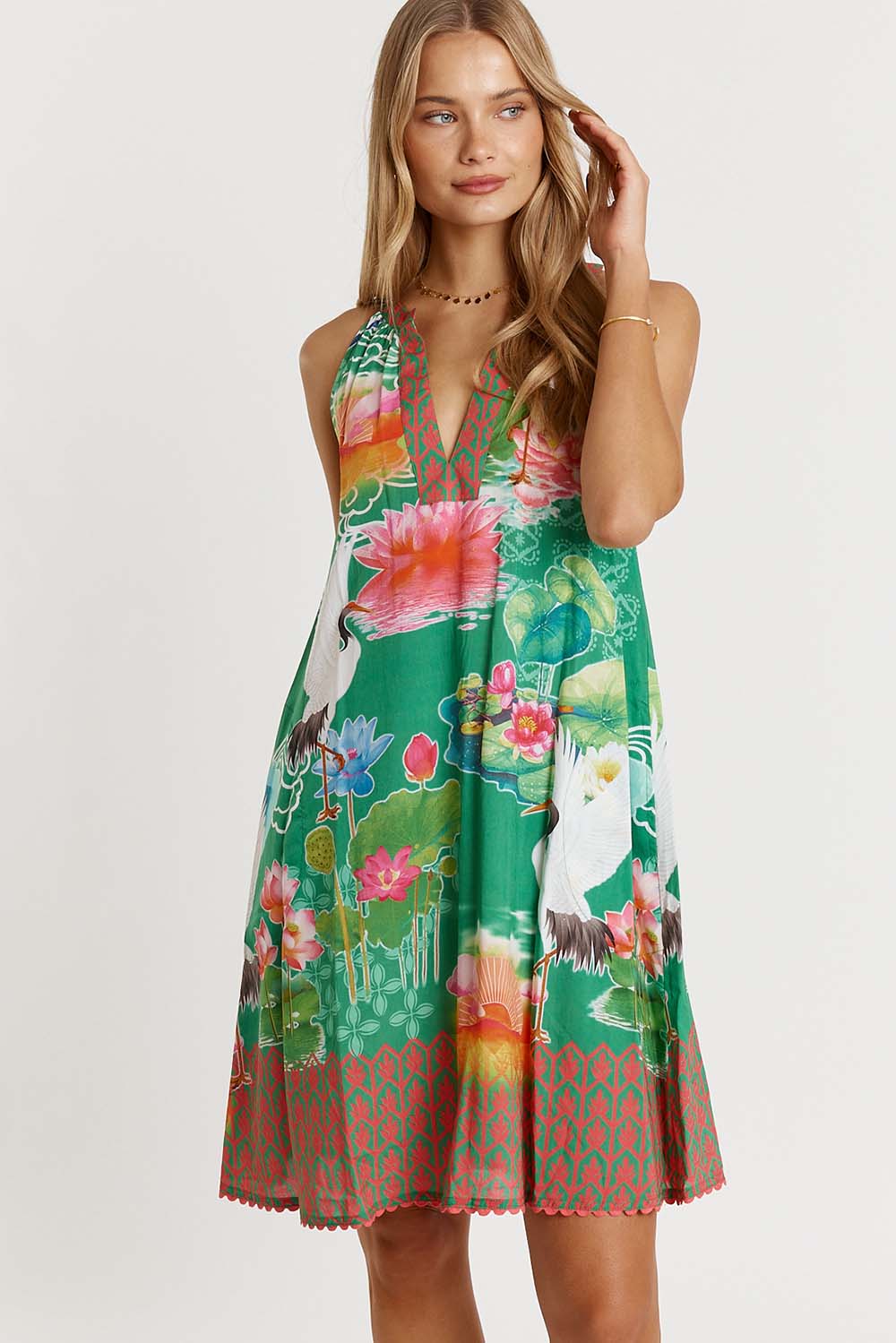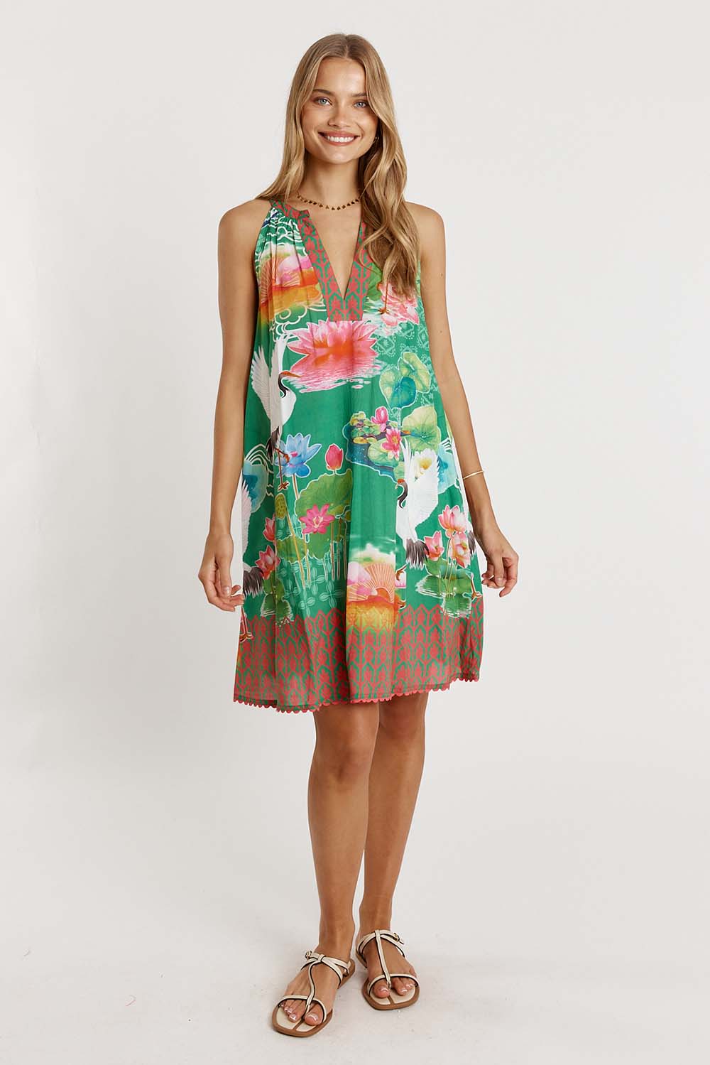 Stepping into warm days feels effortless in the LulaLife Akiko Sundress, a breezy favourite made from 100% viscose for a soft, lightweight feel. Designed with a round neck with band, this relaxed A-line dress gives you easy movement and everyday comfort. The side pockets add a practical touch, while the knee-length cut and ricrac trim on the hem keep things fun and feminine. Finished in a Japanese-inspired digital print and proudly designed in Australia, it’s the perfect throw-on style for weekends, holidays, or sunshine-filled outings.