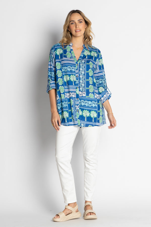 Dive into effortless style with the LulaLife Catira Top in Ocean. This breezy cotton tunic features a flattering V-neckline and relaxed 3/4 sleeves, perfect for layering or wearing solo. The generous tunic length offers comfortable coverage while maintaining that laid-back vibe. Whether you're heading to the shops or catching up with friends, this versatile piece transitions seamlessly from day to night. Soft, breathable, and endlessly wearable—your new go-to top awaits.