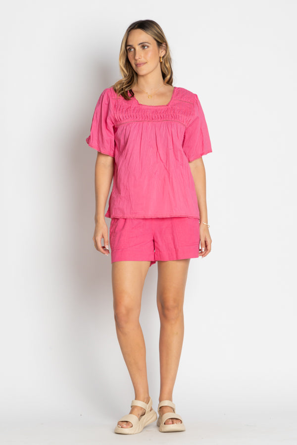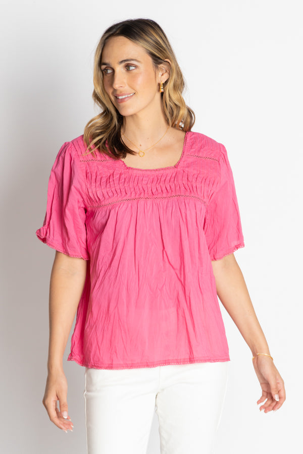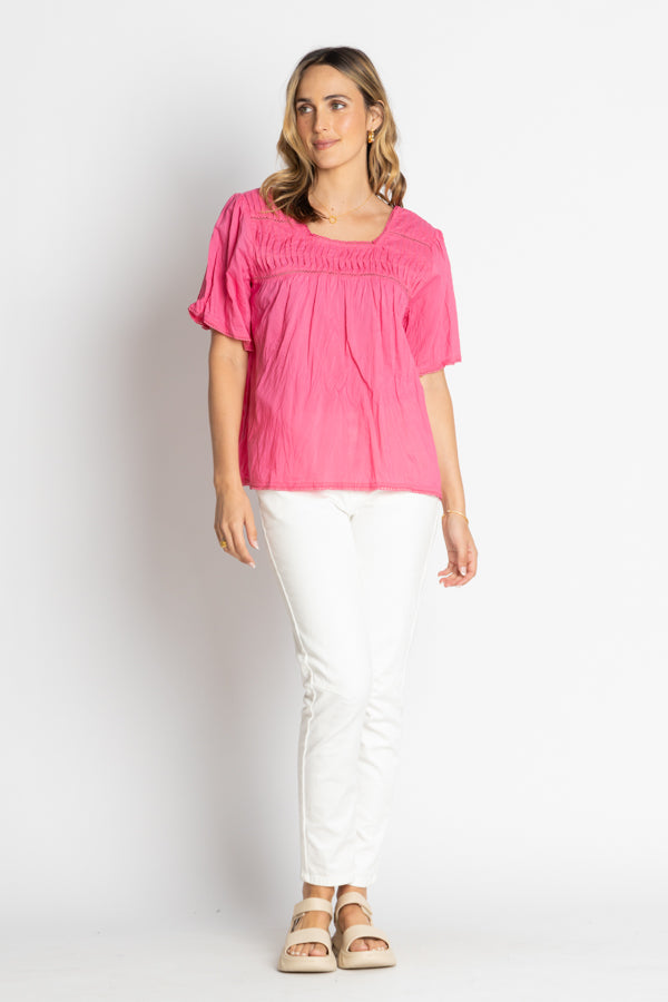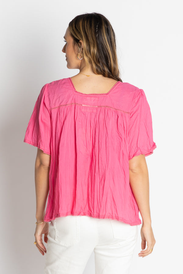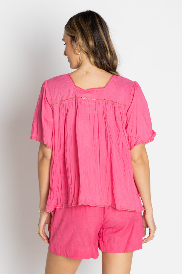Effortlessly chic and beautifully detailed, the LulaLife Celeste Cropped Top is your go-to piece for breezy summer style. Crafted from lightweight 100% cotton voile, this top offers a relaxed fit that drapes comfortably while keeping you cool. The square neckline and elbow-length sleeves add a timeless touch, while braid trim detailing on the neck and hems elevate its boho charm.