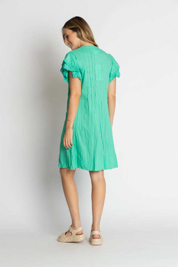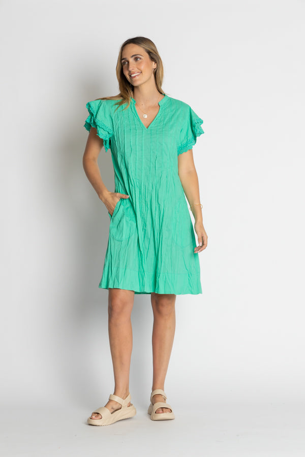 Twirl into your day in this charming Celeste dress! Crafted from soft cotton, it features delightfully ruffled sleeves that add a touch of whimsy to any outfit. The clean, solid sea tone keeps things effortlessly chic, while practical pockets mean you can finally carry your essentials in style. Perfect for casual adventures or relaxed weekend vibes, this dress is your new go-to for comfort that doesn't compromise on personality.