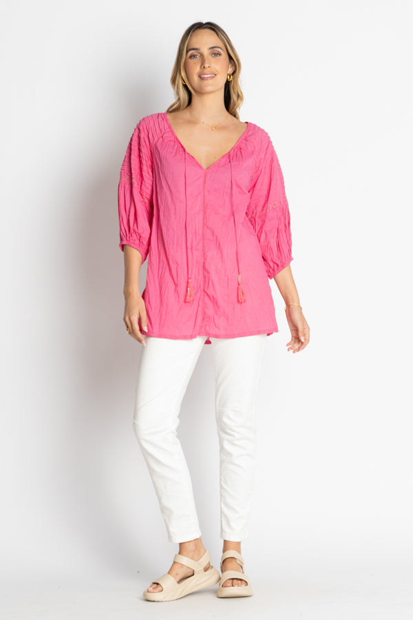 Perfect for warm days or laid-back weekends, this versatile piece pairs effortlessly with jeans, linen pants, or your favourite summer shorts. Designed in Australia, the Celeste Top embodies relaxed coastal style with a hint of artisanal detail.