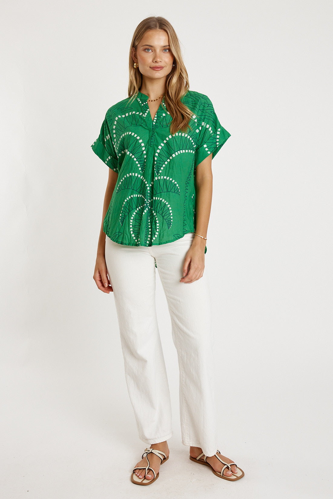 Soft and easy to wear, the LulaLife Idalia Top is a simple everyday staple with a relaxed, breezy feel. Made from 100% cotton, it’s lightweight, breathable, and perfect for warm days. The V neck adds a flattering touch, while the short sleeves with cuffs keep the look clean and casual. Finished with a gently curved hem and a classic relaxed fit, this Australian-designed top pairs effortlessly with denim, shorts, or linen pants for fuss-free, comfortable style.