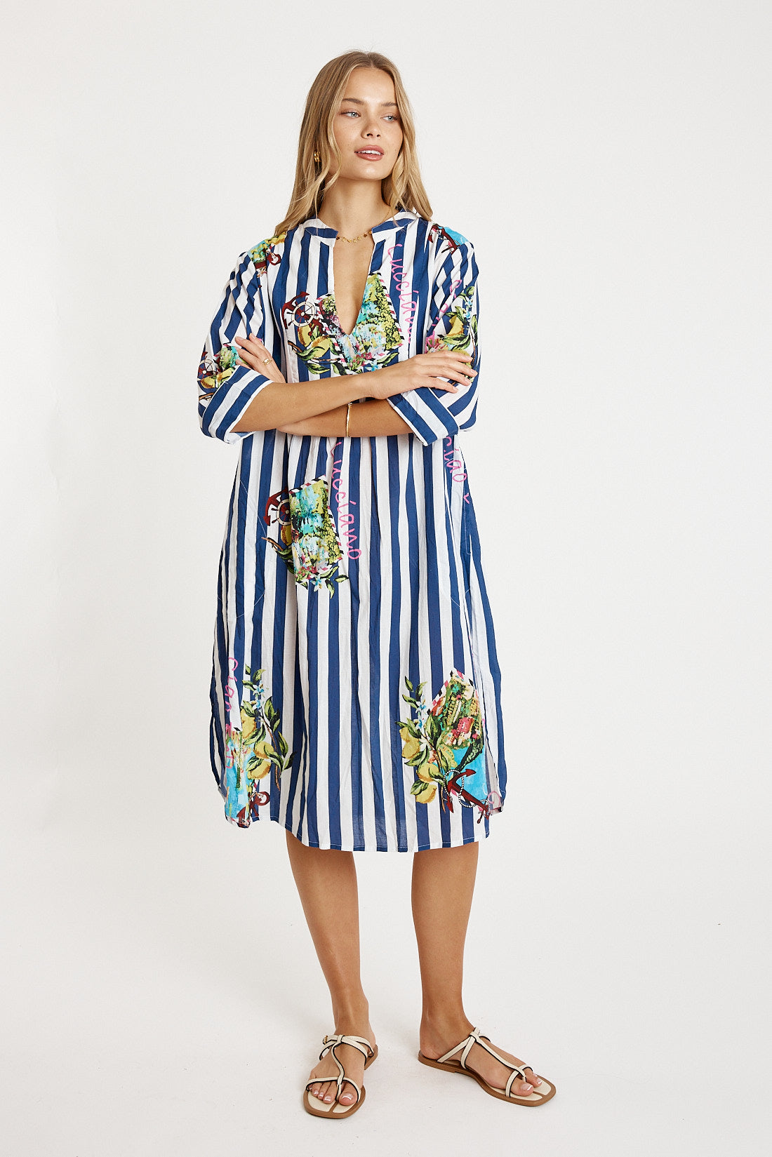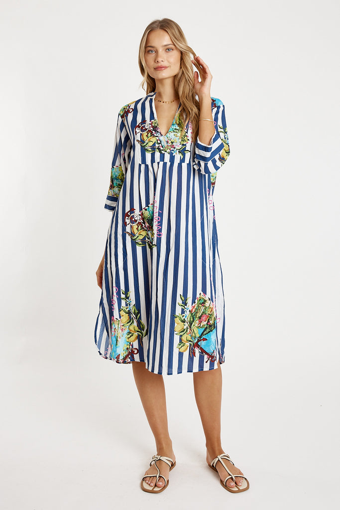LulaLife Lucciano Kaftan Navy Stripe