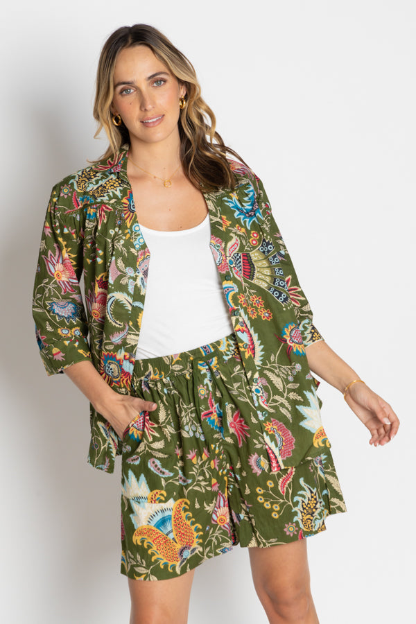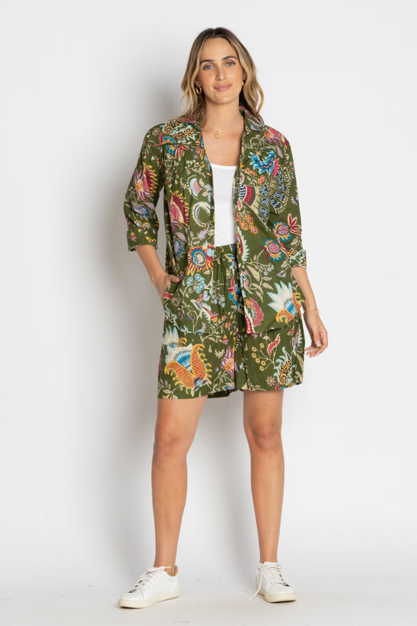 Embrace effortless comfort with the LulaLife Nandita Short. Crafted from soft cotton, this relaxed-fit essential features a beautiful paisley print that adds character to your everyday wardrobe. Practical front pockets keep your essentials within reach, while the laid-back silhouette lets you move freely throughout your day. Perfect for warm weather adventures or casual lounging, this versatile piece is designed to support your relaxed lifestyle.