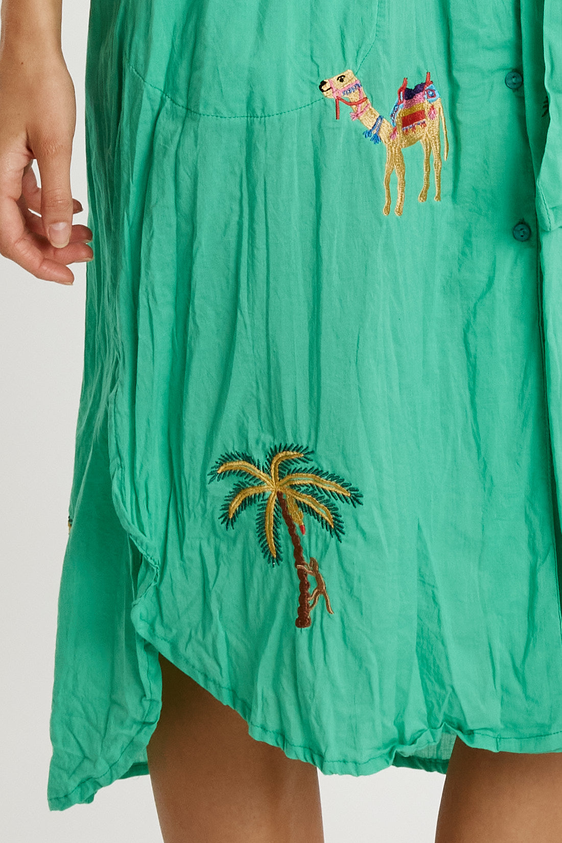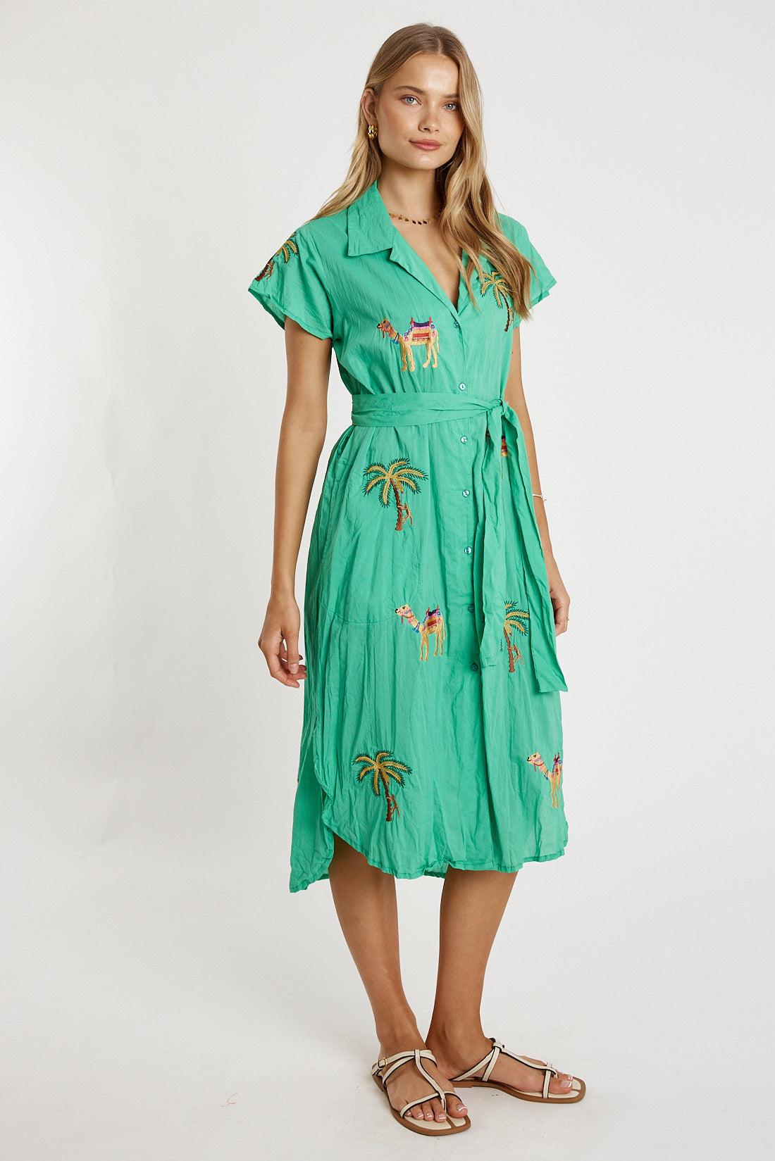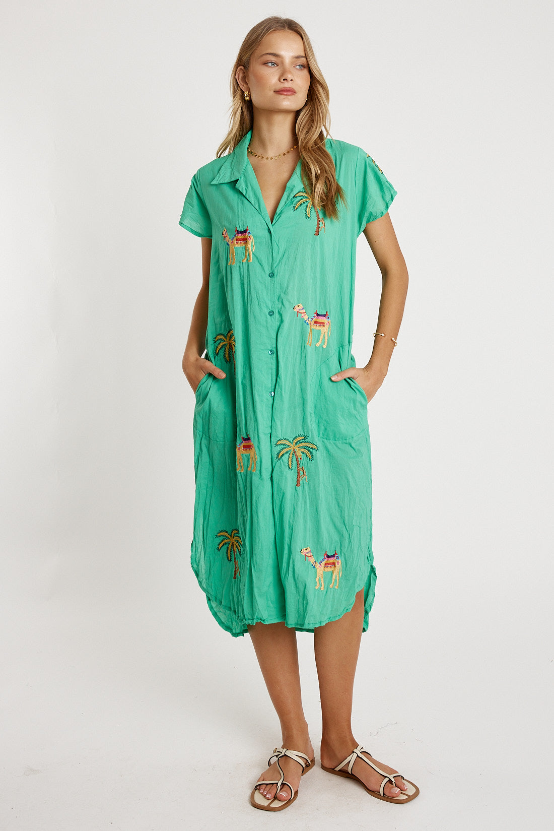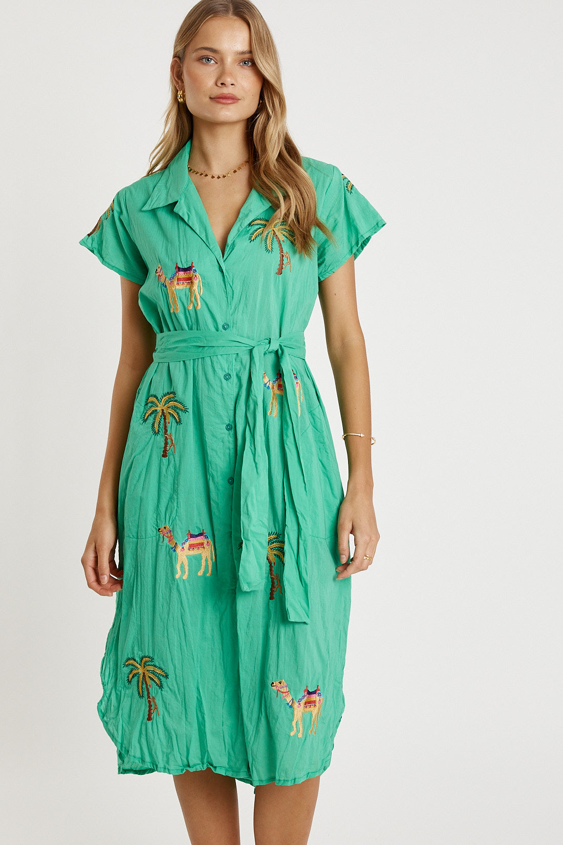 Effortlessly cool and beautifully detailed, the LulaLife Sahara Shirtmaker is your throw-on-and-go dress for easy everyday style. Crafted from 100% cotton, it’s breathable, lightweight, and perfect for warm weather. The embroidered motifs add a gorgeous handcrafted touch, while the open-neck collar and button-through front keep the look relaxed and modern. Designed with a below-knee length, curved hem, and practical side pockets, it also includes a detachable waist tie so you can wear it loose or shaped. Proudly designed in Australia, this breezy shirtmaker blends comfort, detail, and versatility in one easy piece.