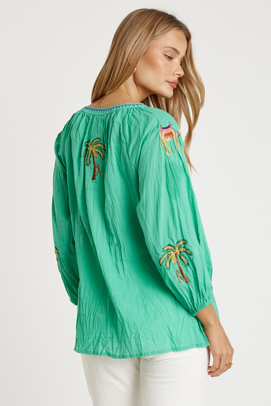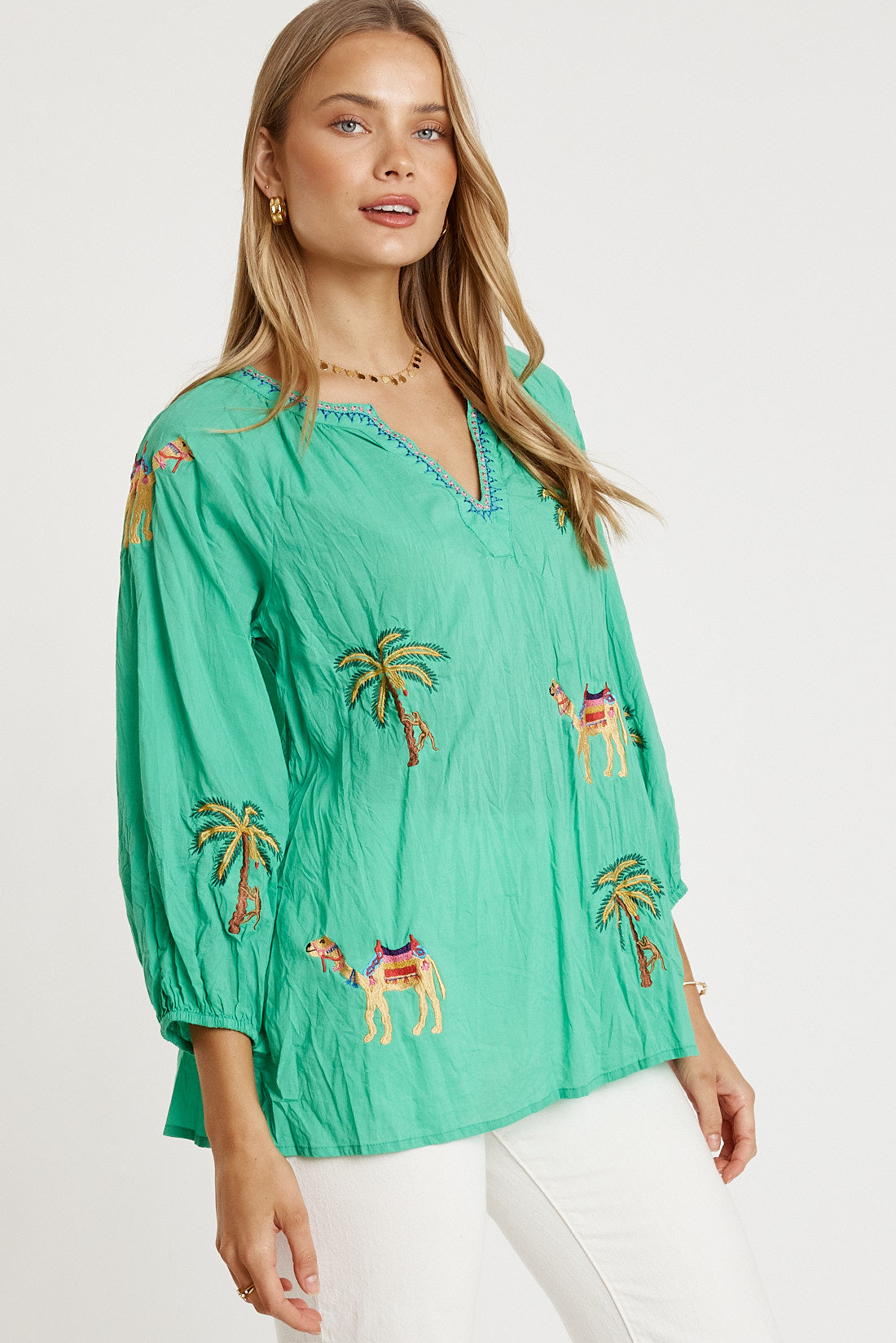 Soft, breezy, and beautifully detailed, the LulaLife Sahara Top brings effortless charm to everyday dressing. Made from 100% cotton, itβs lightweight, breathable, and perfect for warm-weather comfort. The scooped neckline with a front split creates a relaxed, flattering look, while the gentle gathers from the neck add soft movement. The 3/4 length raglan sleeves with elastic hems keep the fit easy and airy. Finished with delicate embroidery and practical side splits, this Australian-designed top pairs perfectly with denim, linen pants, or shorts for a fresh, casual outfit.