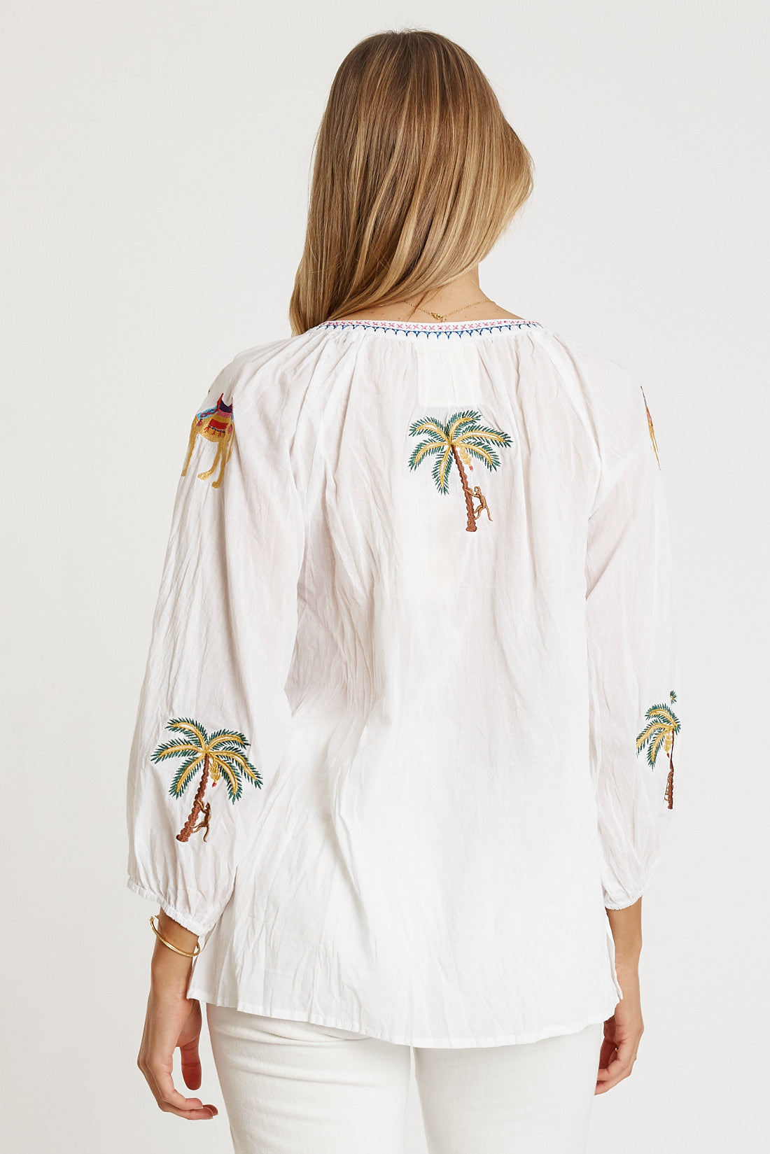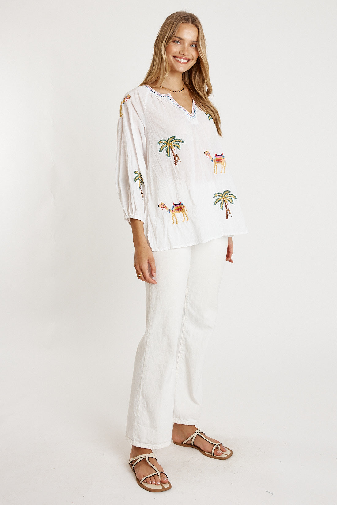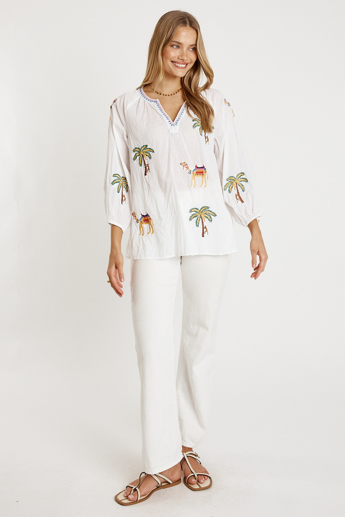 Soft, breezy, and beautifully detailed, the LulaLife Sahara Top brings effortless charm to everyday dressing. Made from 100% cotton, it’s lightweight, breathable, and perfect for warm-weather comfort. The scooped neckline with a front split creates a relaxed, flattering look, while the gentle gathers from the neck add soft movement. The 3/4 length raglan sleeves with elastic hems keep the fit easy and airy. Finished with delicate embroidery and practical side splits, this Australian-designed top pairs perfectly with denim, linen pants, or shorts for a fresh, casual outfit.