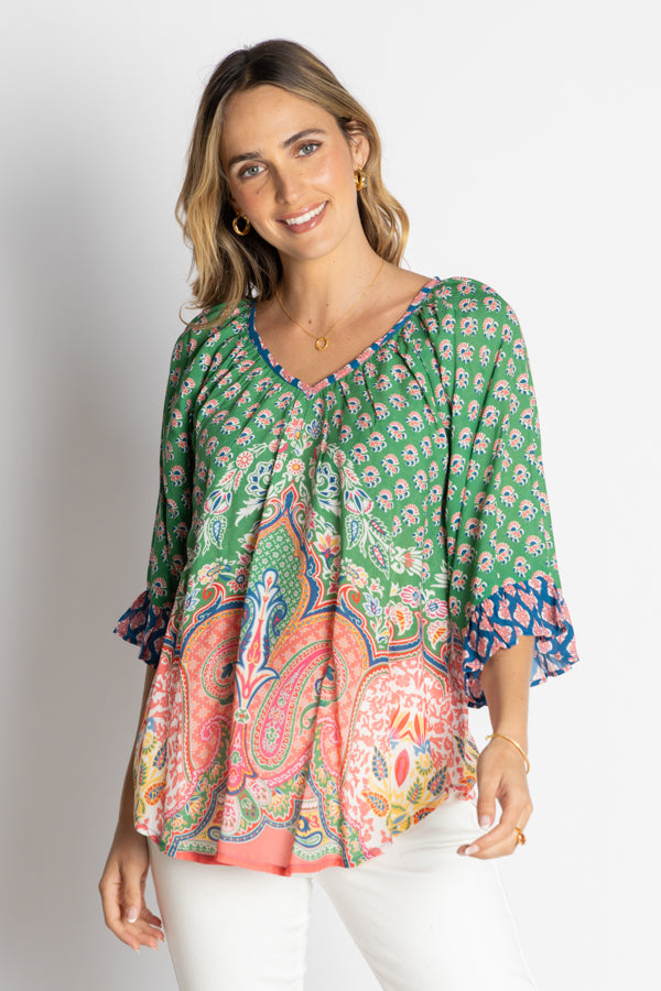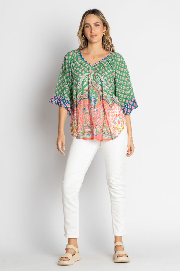 Add effortless charm to your wardrobe with the LulaLife Sarai Top, a beautifully crafted piece designed in Australia. Made from soft, breathable viscose, this relaxed-fit top offers all-day comfort and style. Featuring a vibrant print that brings a fresh, bohemian vibe to any outfit.