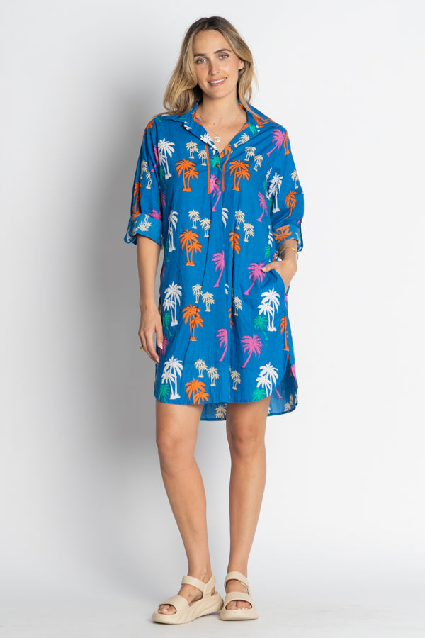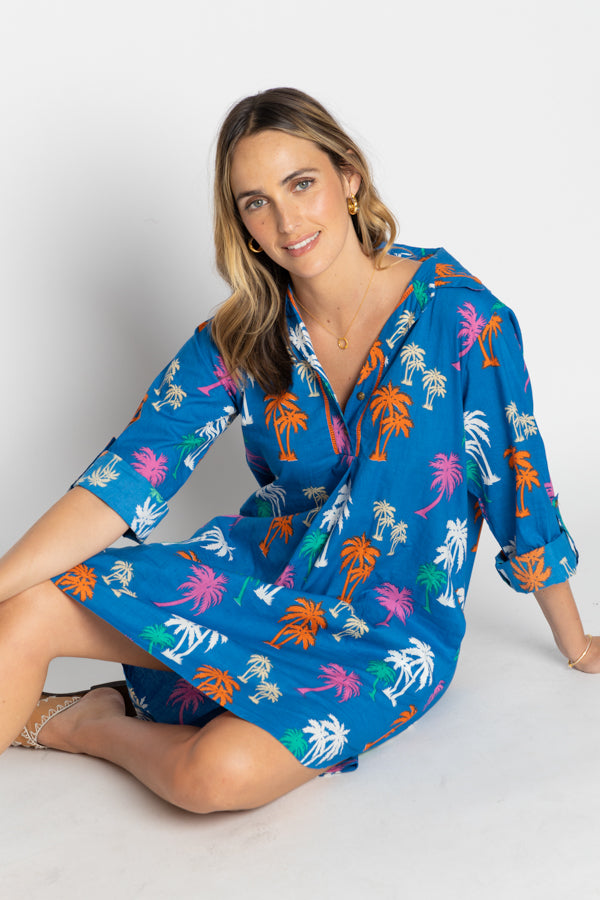 Step into sunshine style with the LulaLife Shamira Shirtmaker, a breezy wardrobe essential designed for effortless days. Crafted from 100% cotton, this relaxed-fit shirt dress features a classic collar, ¾ length sleeves with buttoned tabs, and handy side pockets for a laid-back yet refined look. The curved hem flatters every shape, while the vibrant tropical beach print channels endless summer vibes. Designed in Australia, it’s the perfect blend of comfort, colour, and carefree charm—ideal for seaside strolls or relaxed weekends.