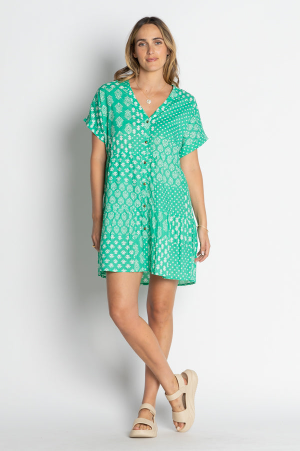 Elevate your everyday wardrobe with the LulaLife Talei Dress. Designed in Australia, this above-knee dress combines effortless style with all-day comfort. Its relaxed fit and breathable 100% cotton fabric make it perfect for warm days, while the V-neck and button-through front add a touch of modern sophistication.
