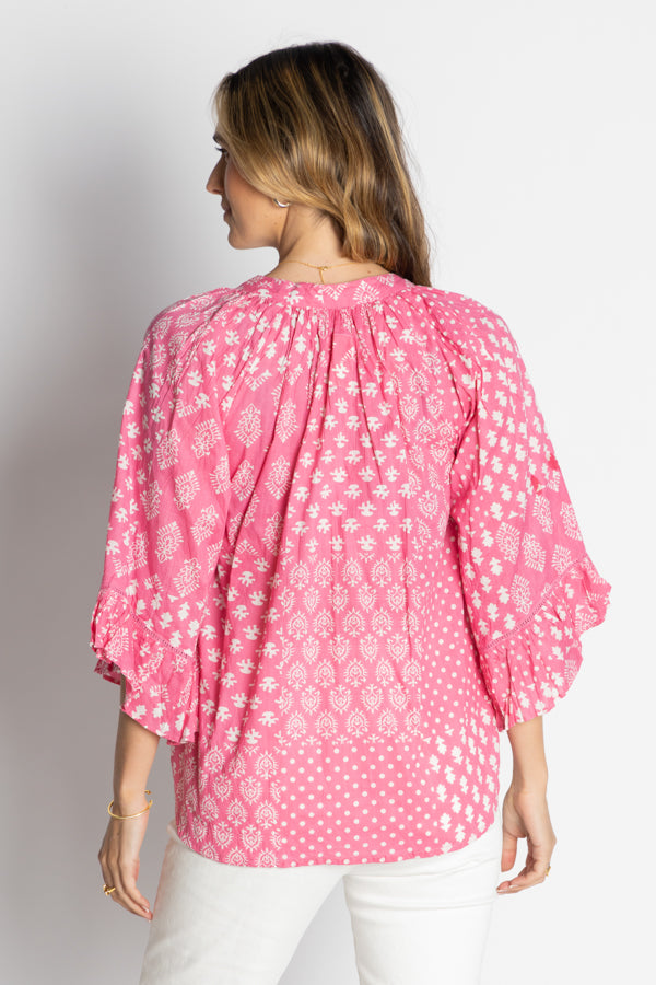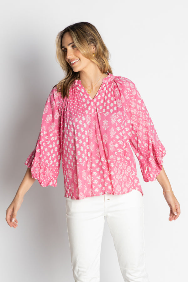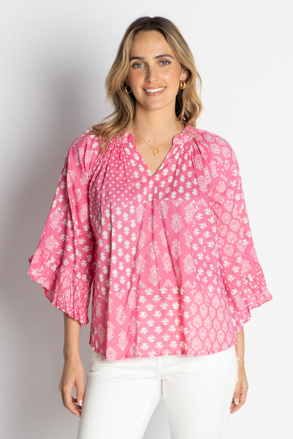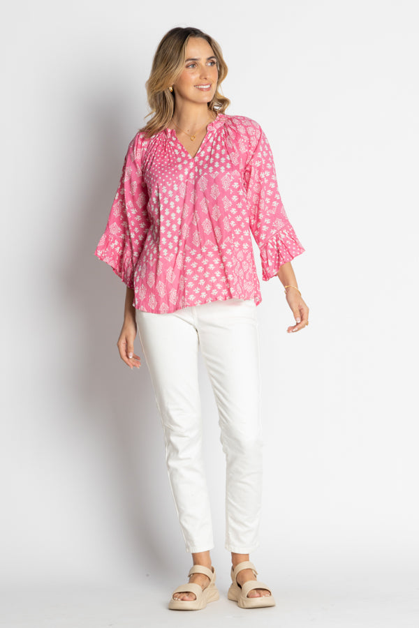 Breathe easy style into your day with the LulaLife Talei Top, a beautifully relaxed piece that blends comfort and flair. Crafted from 100% cotton, it features a flattering V-neckline, wide raglan sleeves with a soft flounce, and a curved hem that drapes effortlessly. The 3/4 length sleeves add a breezy, feminine touch—perfect for warm days or layered looks. Designed in Australia, this top embodies laid-back sophistication and modern boho charm. Pair it with linen pants or denim for an effortlessly put-together outfit.