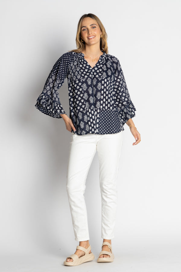 Breathe easy style into your day with the LulaLife Talei Top, a beautifully relaxed piece that blends comfort and flair. Crafted from 100% cotton, it features a flattering V-neckline, wide raglan sleeves with a soft flounce, and a curved hem that drapes effortlessly. The 3/4 length sleeves add a breezy, feminine touch—perfect for warm days or layered looks. Designed in Australia, this top embodies laid-back sophistication and modern boho charm. Pair it with linen pants or denim for an effortlessly put-together outfit.