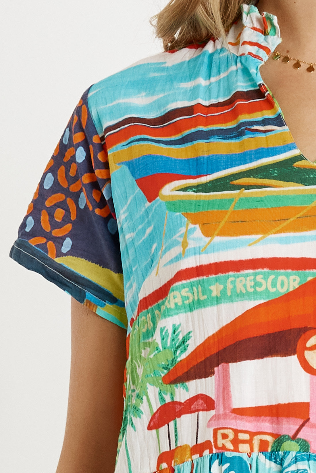 • Neckband with frill trim