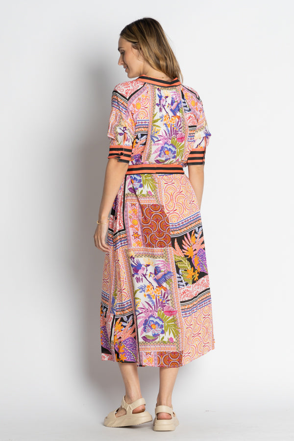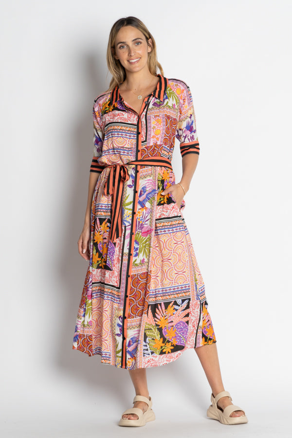 Elevate your wardrobe with the LulaLife Velora Midi Dress β a stunning fusion of comfort and style. Crafted from soft viscose and designed in Australia, this digitally printed dress features a button-through front to the hem, a smart collar, and long sleeves with cuffs for a polished look. The curved hem adds a flattering finish, making it perfect for both casual and dressier occasions. Whether styled with sandals or boots, the Velora Midi Dress is a versatile staple you'll reach for all season.