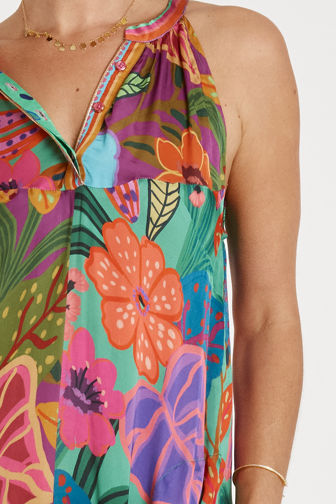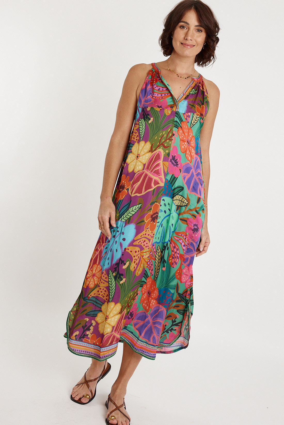 With its striking digital print, the Auberge Maxi is the ultimate statement dress—style it with sandals for daytime ease or heels and bold accessories for an effortless event-ready outfit.