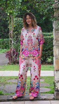 The LulaSoul Baglioni Shirt is the perfect blend of relaxed elegance and vibrant detail. Crafted from 100% viscose modal, this lightweight shirt features a classic collar, button-through design, and a flattering curved hem. Textured multi-coloured piping adds a playful touch, while the relaxed sleeves with buttoned tabs offer versatile styling. Wear it on its own for effortless chic or pair it with the matching pant for a coordinated look. Ideal for warm days, travel, or casual outings, this shirt combines comfort with eye-catching style.