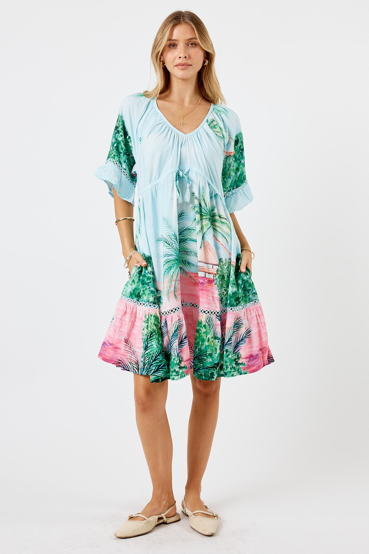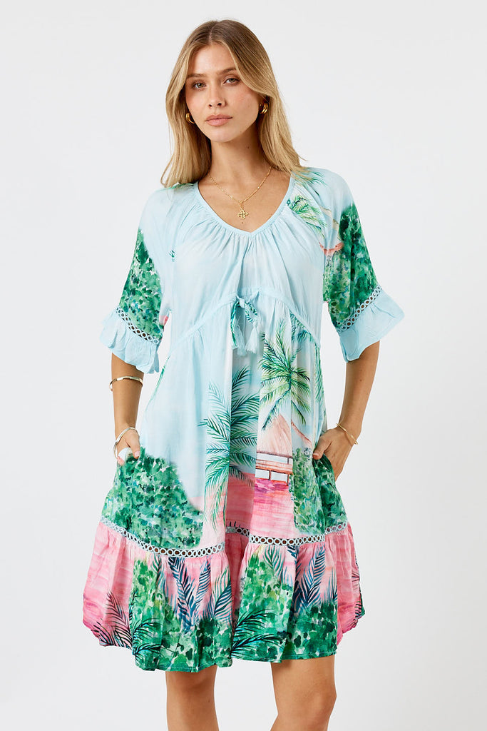 Elevate your summer wardrobe with the LulaSoul Bora Bora Tie Dress β a must-have boho-chic dress designed exclusively for Kabana. Crafted in 100% premium viscose modal, this lightweight and breathable dress delivers effortless comfort and style. Featuring a relaxed fit, flattering V-neckline, and an adjustable under-bust casing with tie and tassel details, it offers a customizable fit for all body shapes. The wide raglan sleeves and A-line silhouette with gathered hem flounce create graceful movement, while side pockets add practical charm. Finished with a stunning digital print, this designer Australian dress is perfect for beach days, casual outings, or tropical getaways. Stand out in this exclusive Kabana style Bora Bora dress.