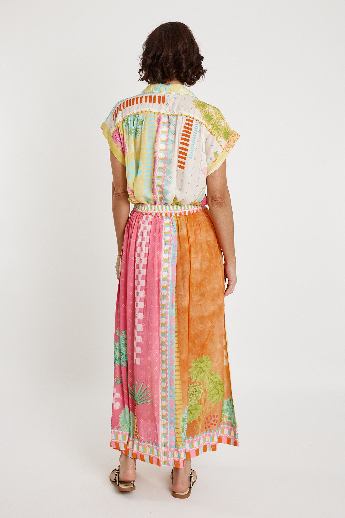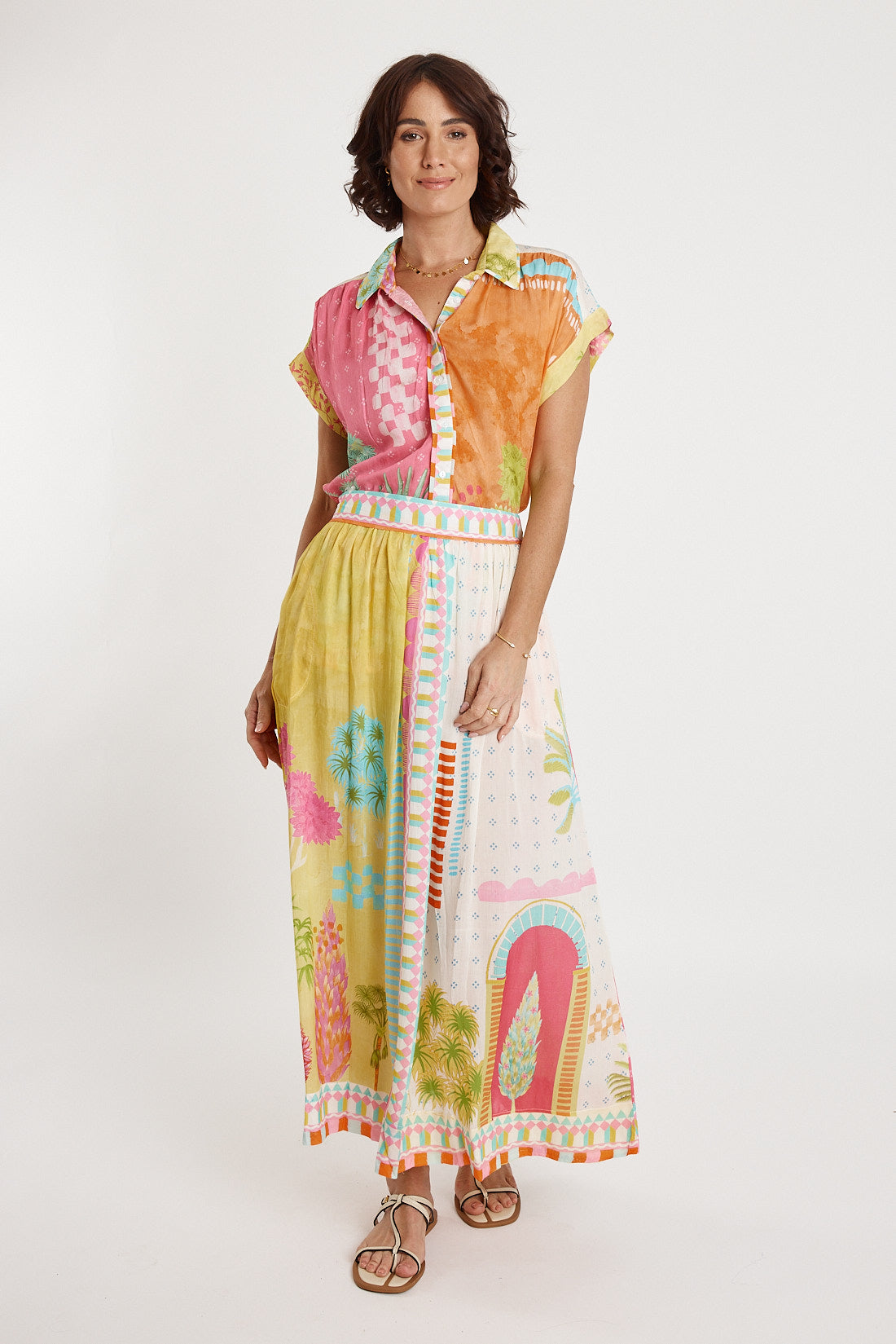 Flowy, feminine, and effortlessly easy to style, the LulaSoul Etereo Skirt is the perfect statement piece for warm-weather dressing. Made from soft 100% viscose modal, it drapes beautifully with a lightweight, comfortable feel. The gathered design adds movement, while the above-ankle length creates a flattering, modern silhouette. A flat front waistband keeps the look clean, and the elastic back ensures a comfortable fit. Finished with practical side pockets and an exclusive digital print, this Australian-designed skirt pairs perfectly with a simple tee or the matching Etereo Top for a coordinated look.