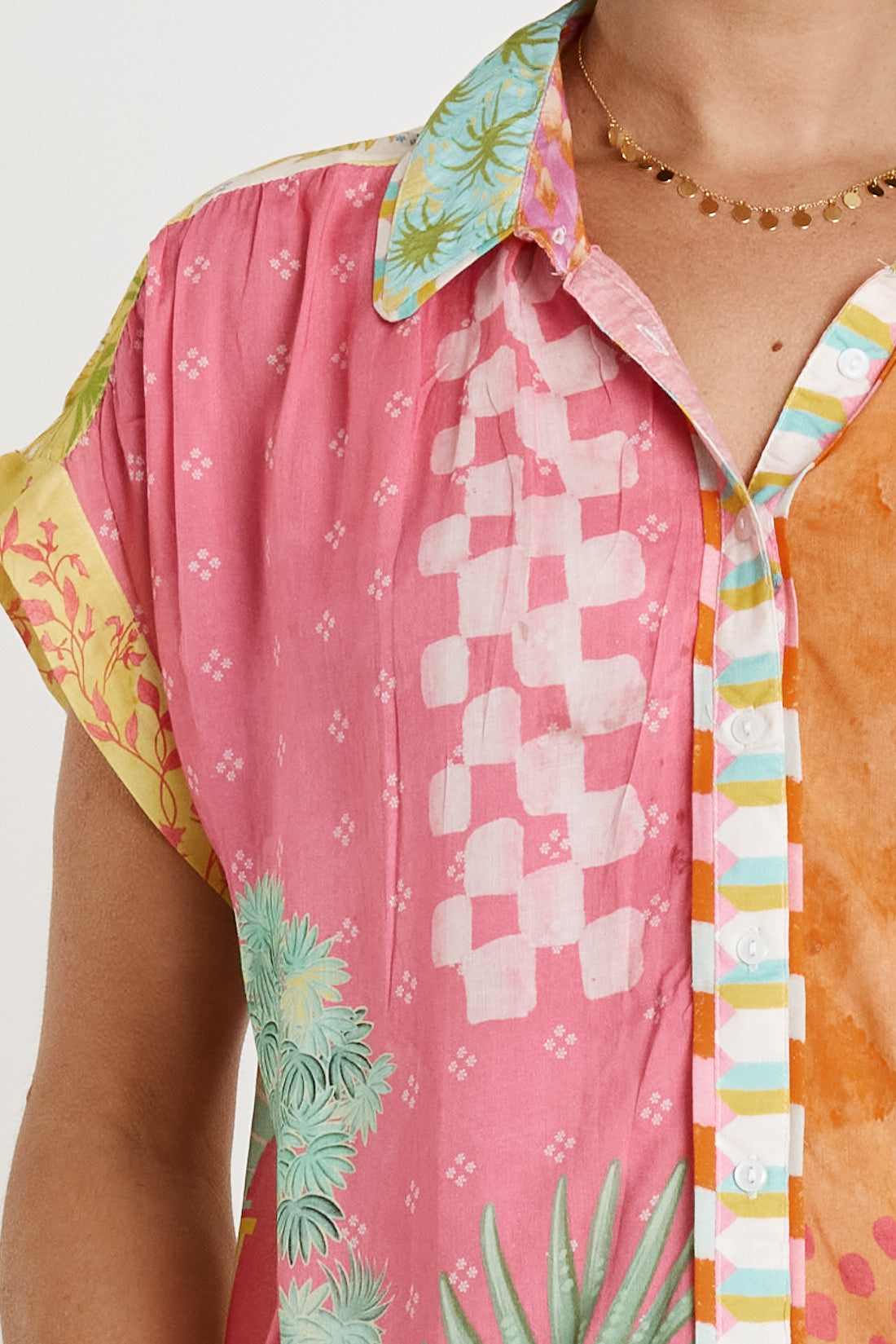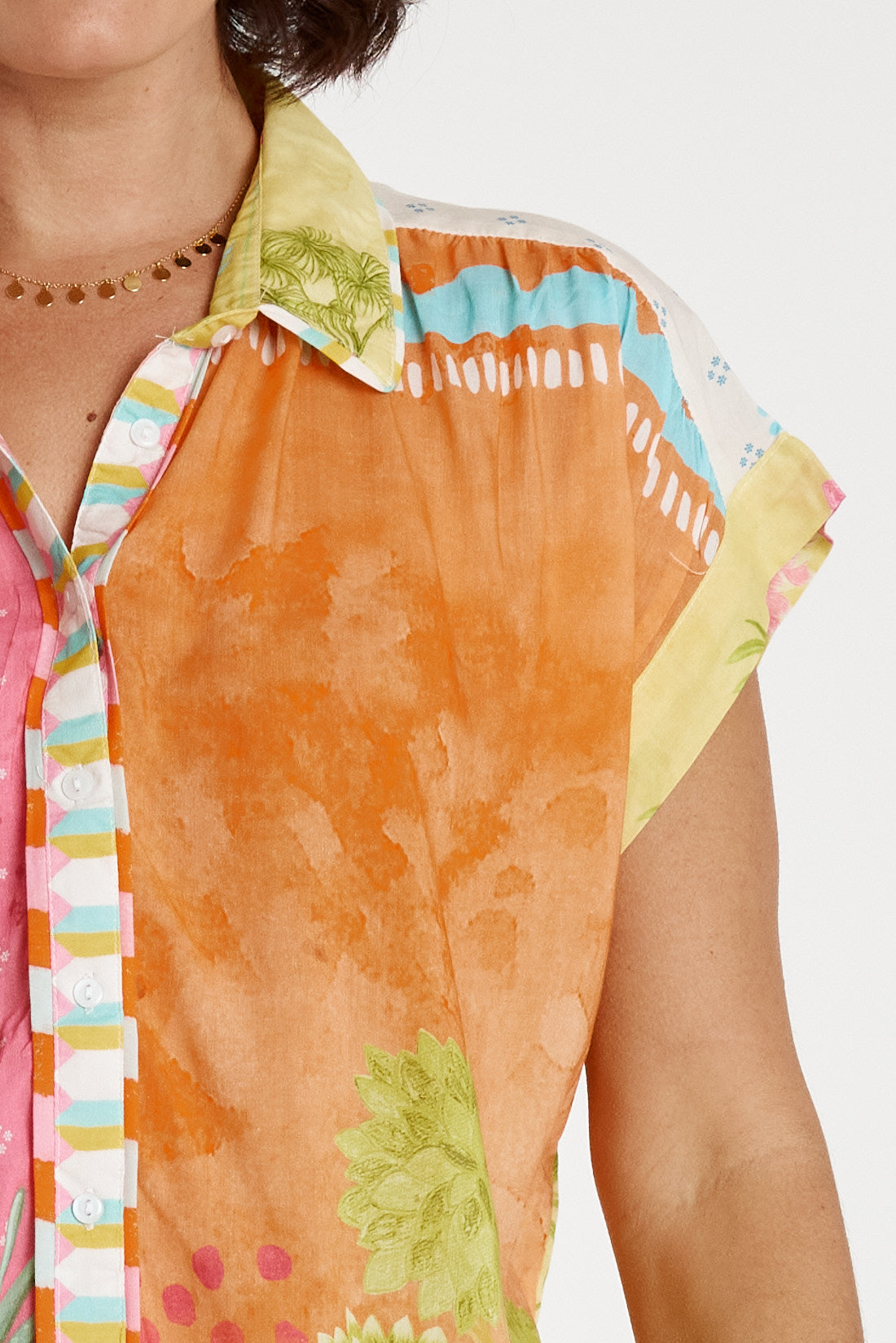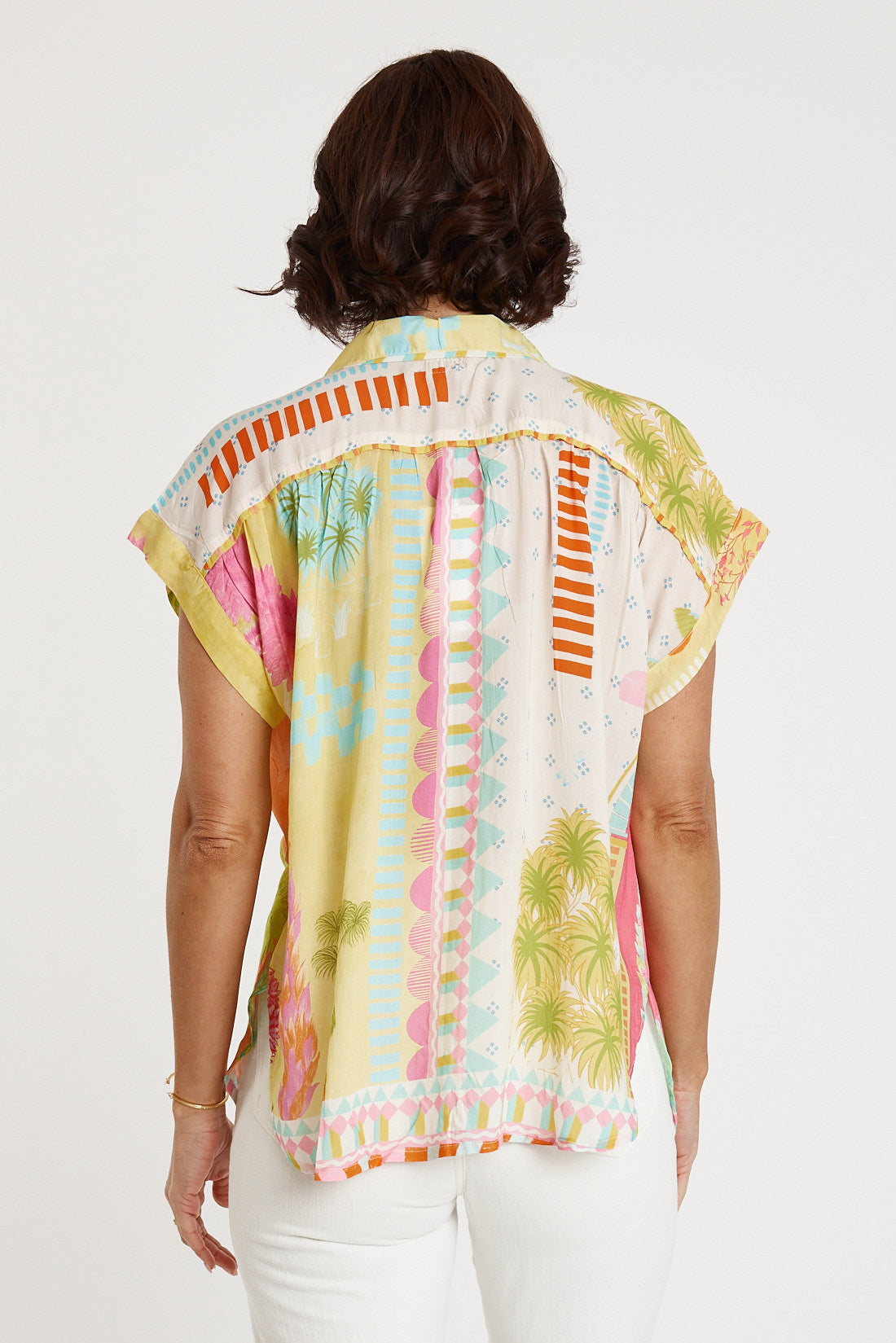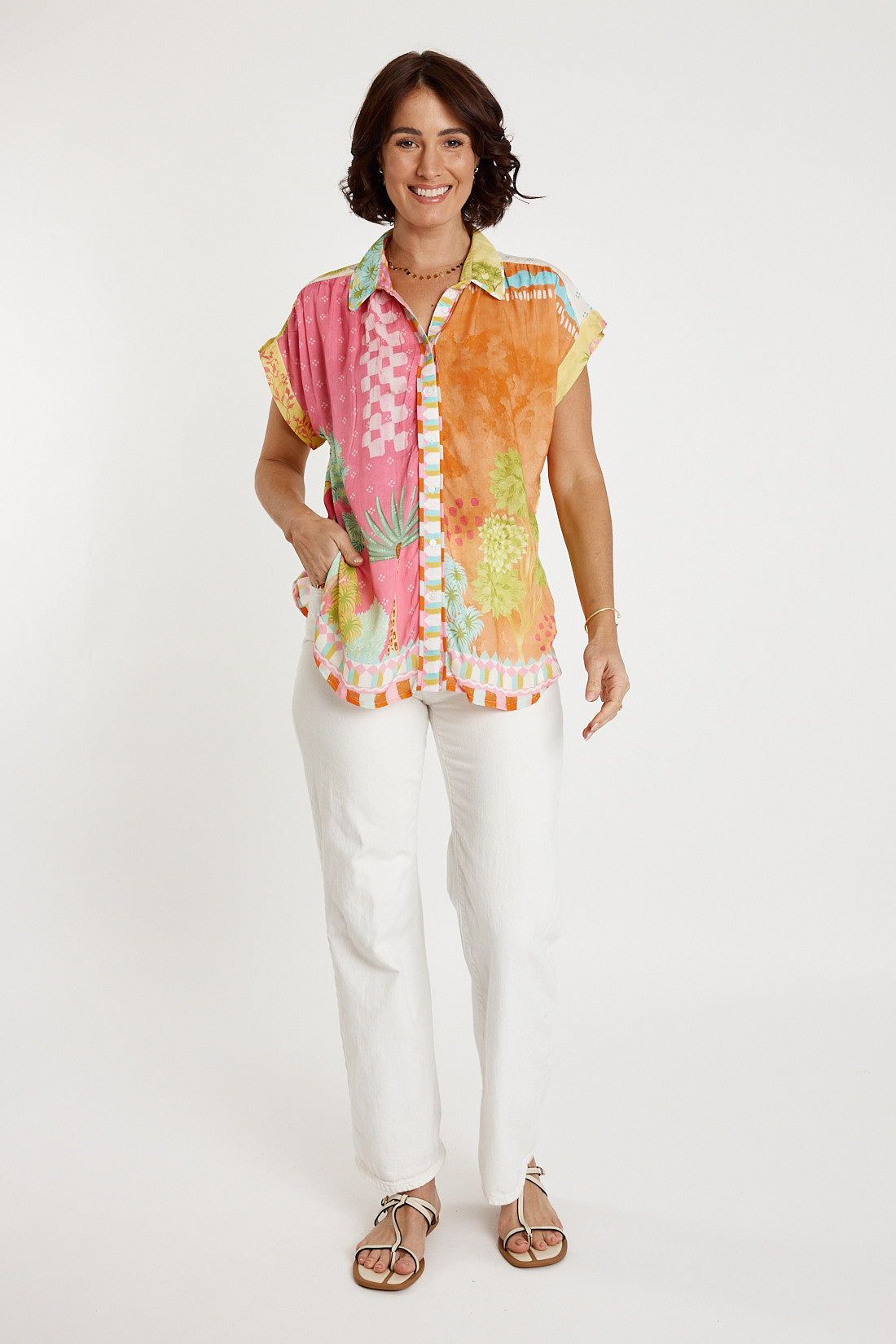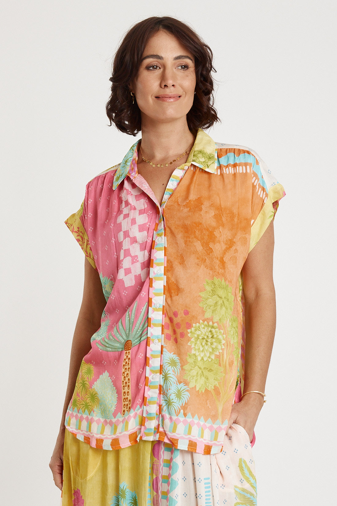 Light, vibrant, and effortlessly wearable, the LulaSoul Etereo Top is designed for relaxed everyday style with a polished finish. Made from soft 100% viscose modal, it drapes beautifully and feels cool and breathable on the skin. The collared neckline and button-through front keep the look clean and versatile, while the capped sleeves with cuffs add a modern, structured touch. Finished with a curved hem and an exclusive digital print, this Australian-designed top pairs perfectly with denim, linen, or the matching Etereo Pants for an easy, standout outfit.