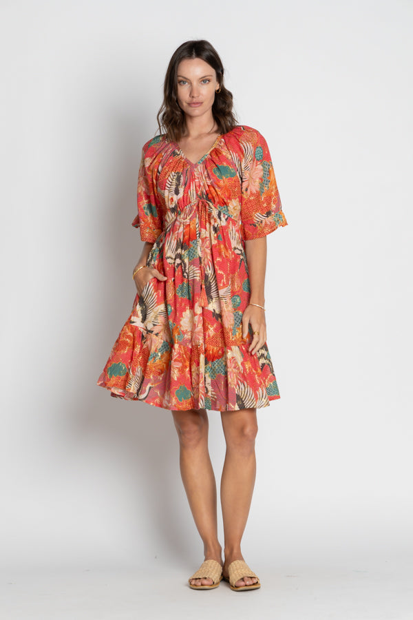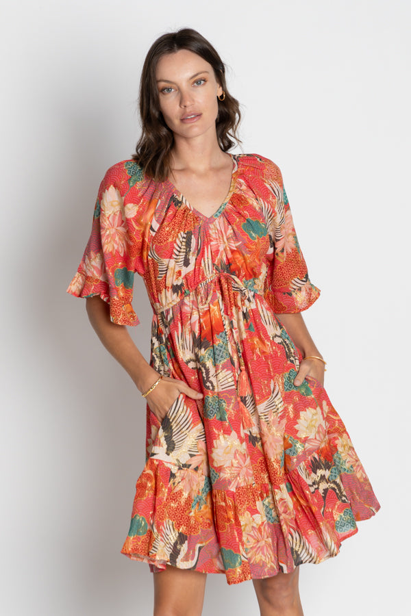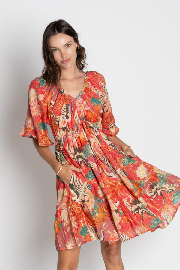 The LulaSoul Hoshino Tie Dress combines elegance with everyday wearability. Crafted from luxurious viscose lurex, this piece catches the light beautifully for subtle shimmer and sophistication. The flattering V-neckline draws attention upward, while delicate frills adorning the sleeves add a touch of feminine charm. Perfect for elevating your wardrobe with a dress that feels as good as it looks, this red stunner works beautifully for both special occasions and confident everyday styling.
