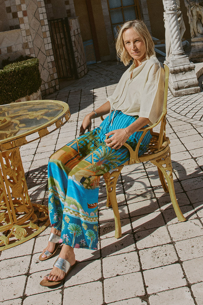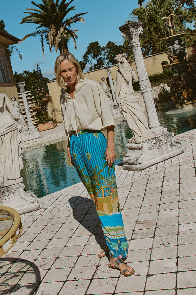 Featuring a relaxed fit and elastic waist with adjustable ties, these pants promise day-long comfort and a customisable fit. The straight leg design and full-length cut offer timeless style, while side pockets add practicality for everyday wear. Perfect for pairing with a simple top or the matching print for a coordinated look, the Mardiva Pant transitions seamlessly from beachside strolls to brunch with friends.