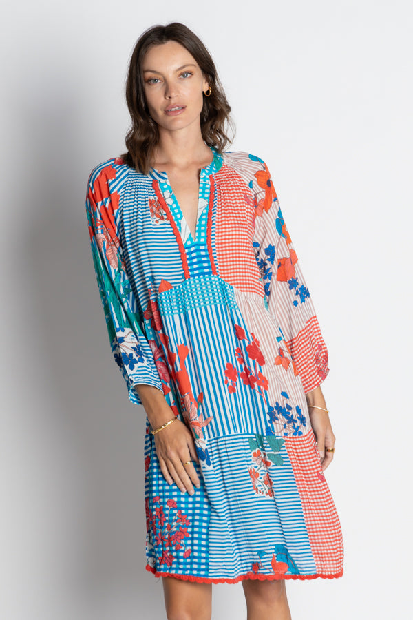 The LulaSoul Wymara Dress is your new go-to for effortless style. Crafted from soft viscose modal, this relaxed-fit dress drapes beautifully while keeping you comfortable all day long. Three-quarter sleeves and charming ric rac trim add playful detail to this casual essential. Throw it on and go—perfect for everything from weekend errands to casual outings. A versatile piece that works as hard as you do.