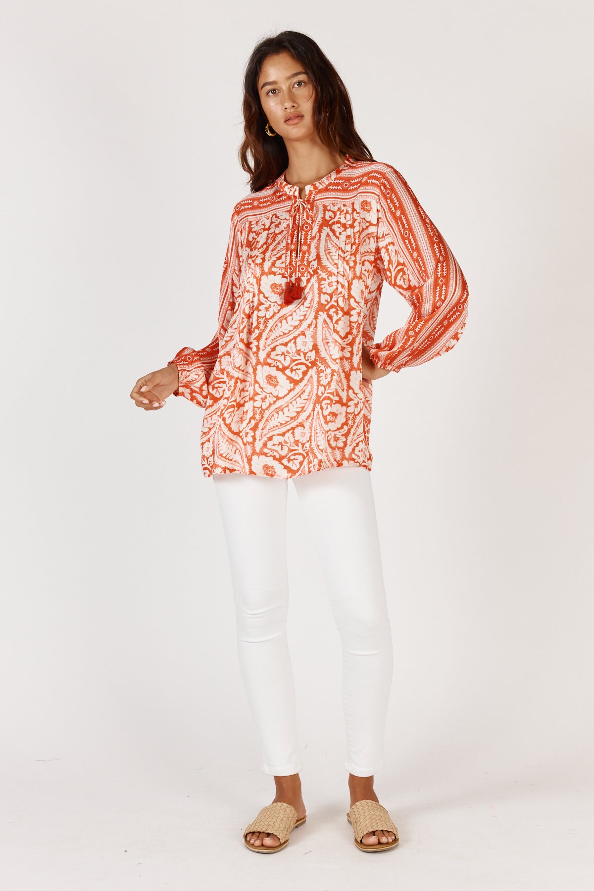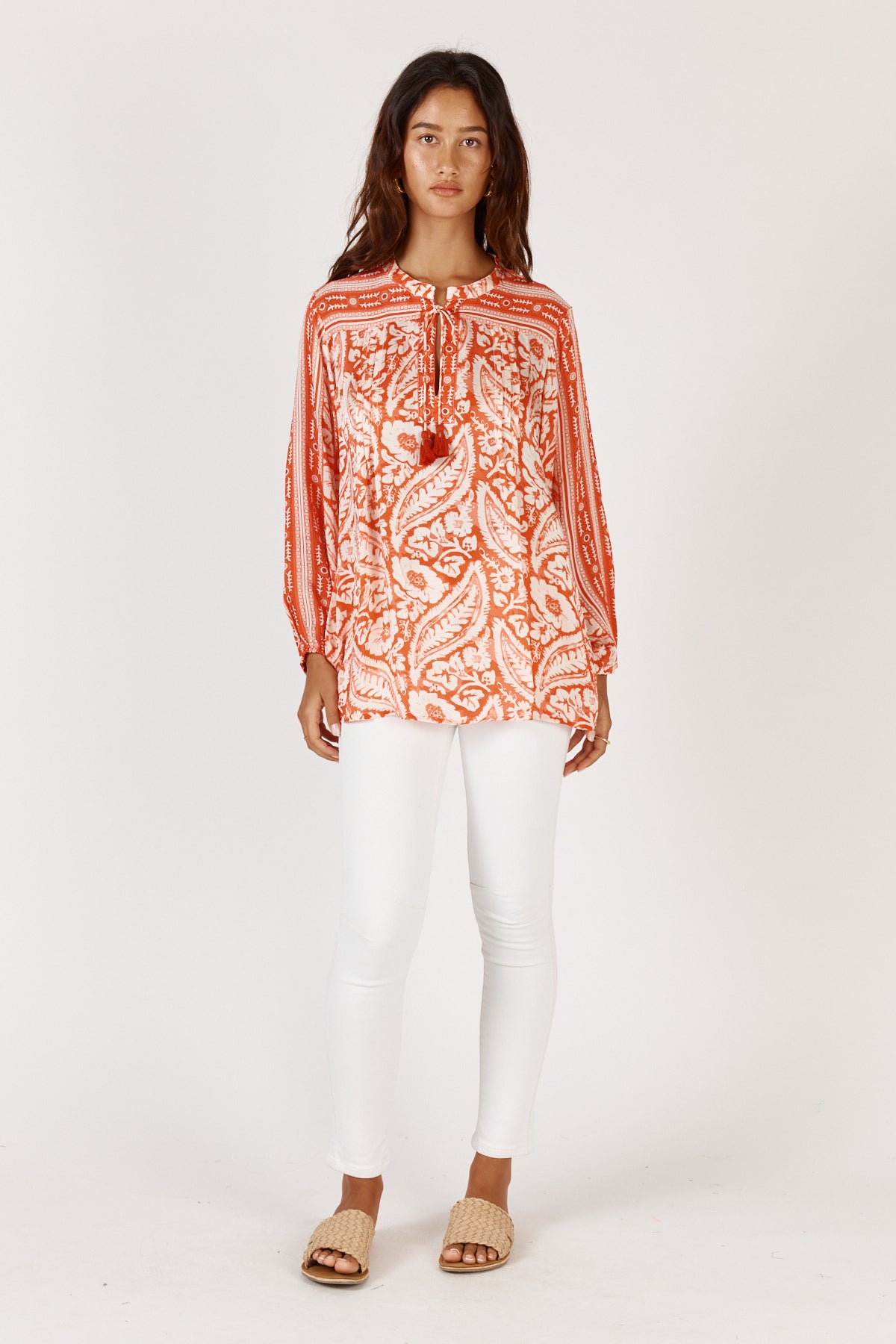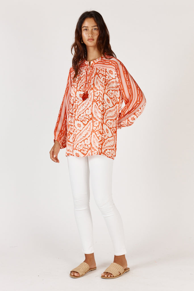 The Rubyyaya Constantine Shirt in rich red combines effortless elegance with refined comfort. Crafted from luxurious modal satin, this relaxed-fit piece drapes beautifully while maintaining its shape. Extended sleeves and a distinctive tassel tie detail elevate the design, making it equally suited to casual weekends or polished evenings. A versatile wardrobe essential that transitions seamlessly from day to night.