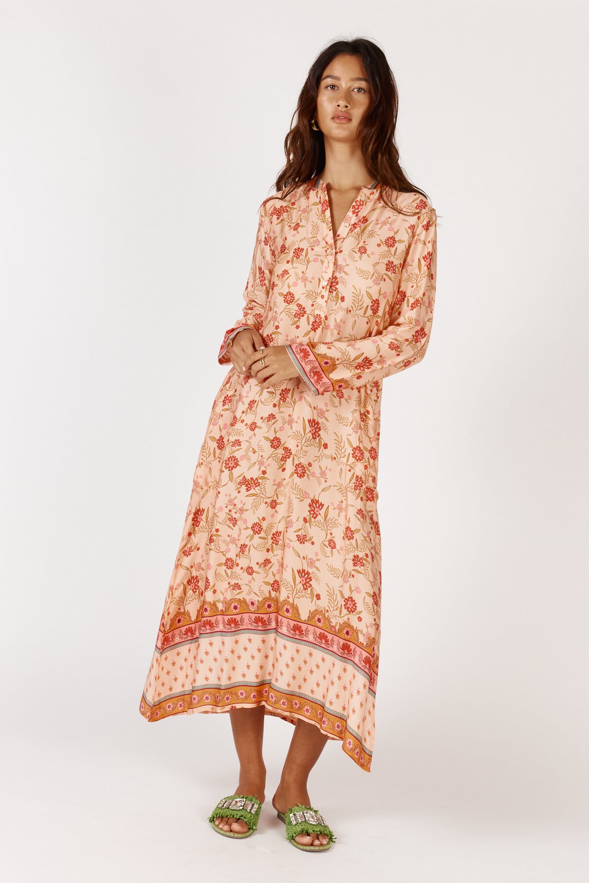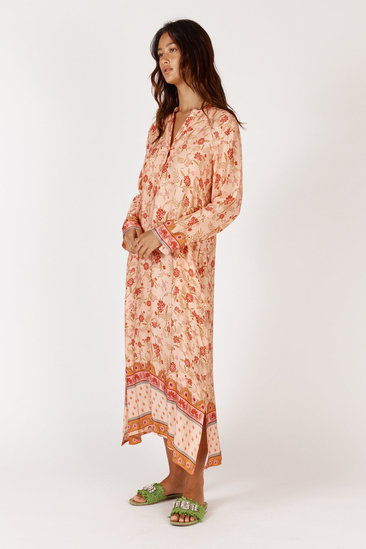 Elevate your evening wardrobe with this sophisticated maxi dress, crafted from luxurious modal satin that drapes beautifully against the skin. The flattering V-neckline and long sleeves offer timeless elegance, while practical side splits provide ease of movement. Thoughtfully designed pockets add both function and contemporary style. Perfect for special occasions or refined everyday wear, this piece combines understated luxury with wearable comfort.