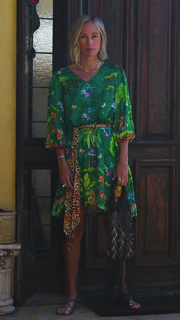 The Rubyyaya Mataram Dress is crafted from 100% viscose satin, offering a soft drape and luxurious feel. Designed with an A-line silhouette, flattering V-neckline, and puff sleeves with elasticated cuffs, this dress balances comfort and elegance. A separate self-tie belt allows you to define your waist, while side seam pockets add functionality. Falling to the knee with a generous fit, it’s the perfect everyday or occasion piece. Designed in Australia and made in India, this timeless dress embodies effortless style.
