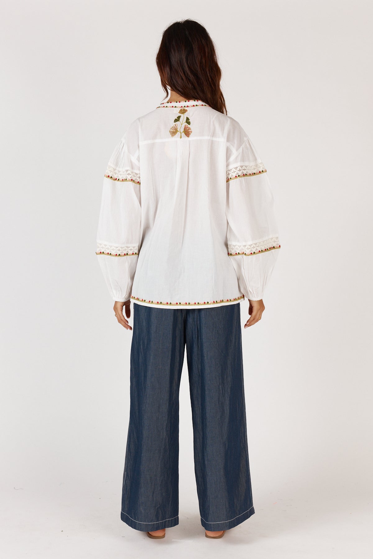 Elevate your wardrobe with this striking tunic-length top, crafted from soft cotton and adorned with intricate sequin embroidery. The generous, billowing sleeves create an effortlessly elegant silhouette that commands attention. Perfect for layering or wearing as a statement piece, this sophisticated design transitions seamlessly from casual gatherings to more refined occasions. A versatile essential that celebrates understated luxury.