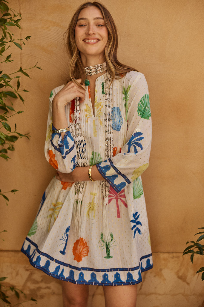 Step into effortless sophistication with the Rubyyaya Rock Lobster Dress, where coastal charm meets everyday elegance. Crafted from 100% cotton with a subtle fine lurex-embellished base cloth, this dress shimmers softly as you move—perfect for sunny days or balmy nights. The pleated bodice flatters your shape while offering a breezy fit, and the 3/4 sleeves add a refined touch for versatile styling. Falling gracefully to the knee, it’s the ideal balance of comfort and chic. Designed in Australia, this statement piece channels Rubyyaya’s signature fusion of artistry and laid-back luxury.